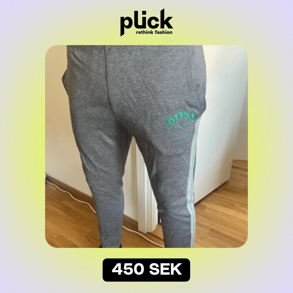 Gråa Hugo boss mjukisbyxor med gröna detaljer Storlek XXL obs små i storleken passar xl