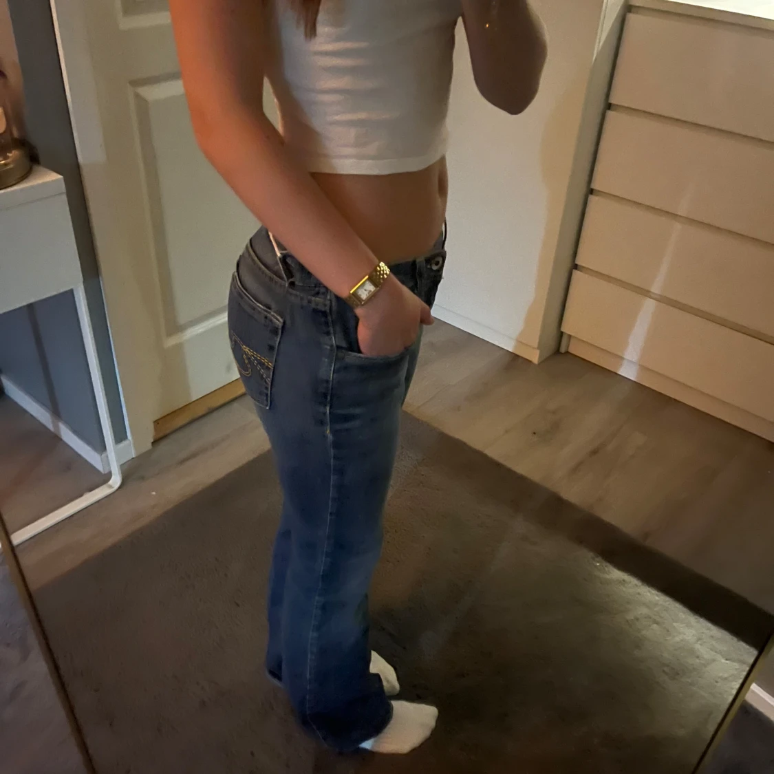 Jag har sytt dem pĂ„ varje sida av midjan och sedan satt ett snöre dĂ„ dem Ă€r för stora pĂ„ mig. DĂ„ jag inte anvĂ€nder dem lĂ€ngre sĂ„ sĂ€ljer jag dem. Man kan sortera upp sömmarna och ta bort snöret och sĂ„ önskas. Bra skick. Snygg detalj pĂ„ fickornađ