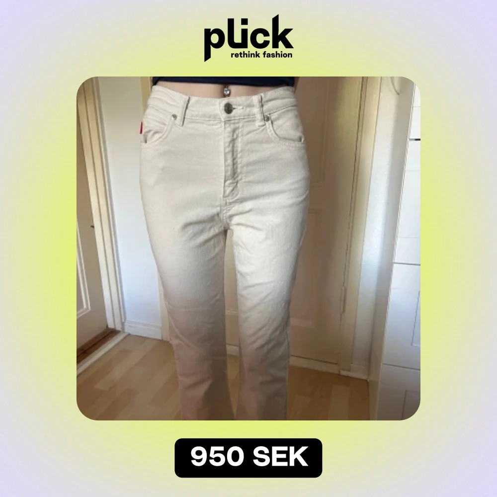 Hugo byxor i storlek 32. Nyskick. Krämfärgade. Fråga gärna om fler bilder, mätningar, osv. Skriv helst innan du köper!