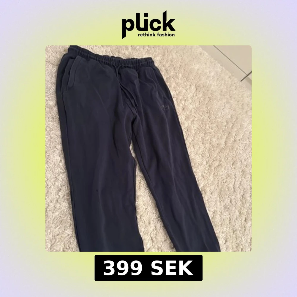 Mörkblå mjukisbyxor från Hugo Boss med elastisk midja och snörning. Byxorna har sidofickor och diskret Boss-logga på ena benet. Perfekta för chill dagar eller när du vill ha en clean och avslappnad look.