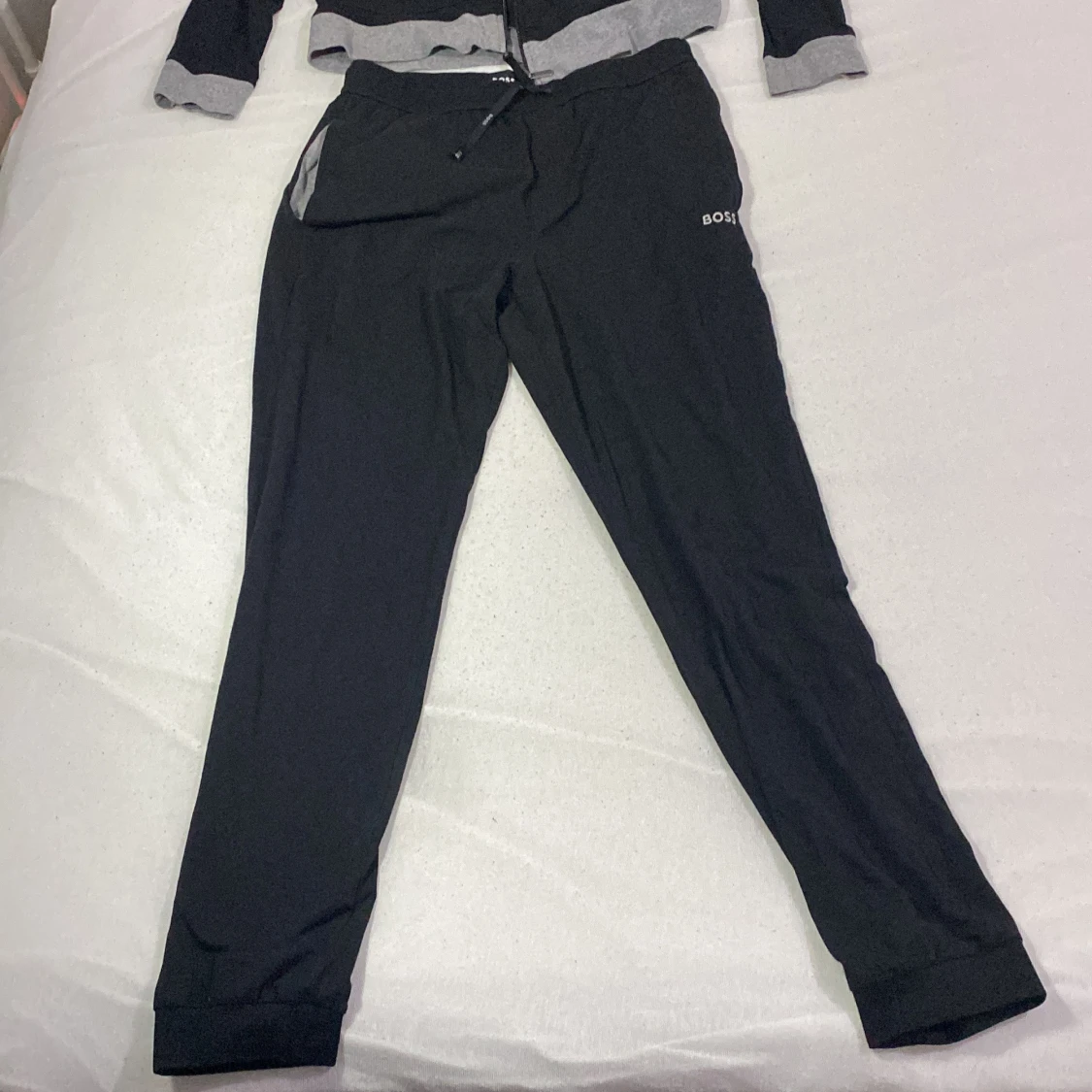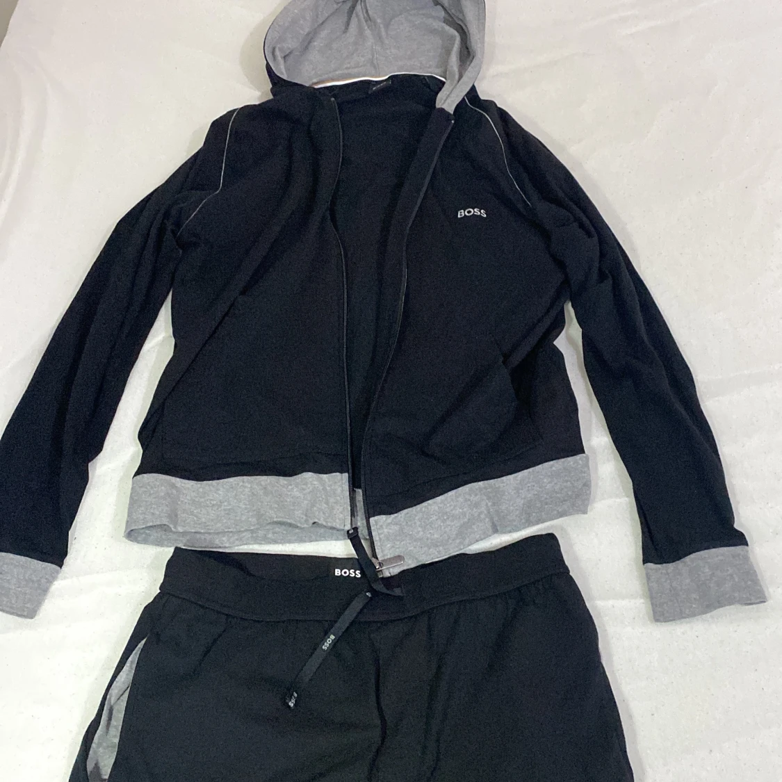 Säljer en exklusiv Hugo Boss mjukisdress i svart, som kombinerar lyxig komfort med stilren design. Setet består av en mjukisjacka och byxor, perfekt för både avslappnade tillfällen och när du vill ha en bekväm men ändå sofistikerad look. Hugo Boss är känt för att leverera premiumkläder med både funktion och stil, och denna dress är inget undantag.