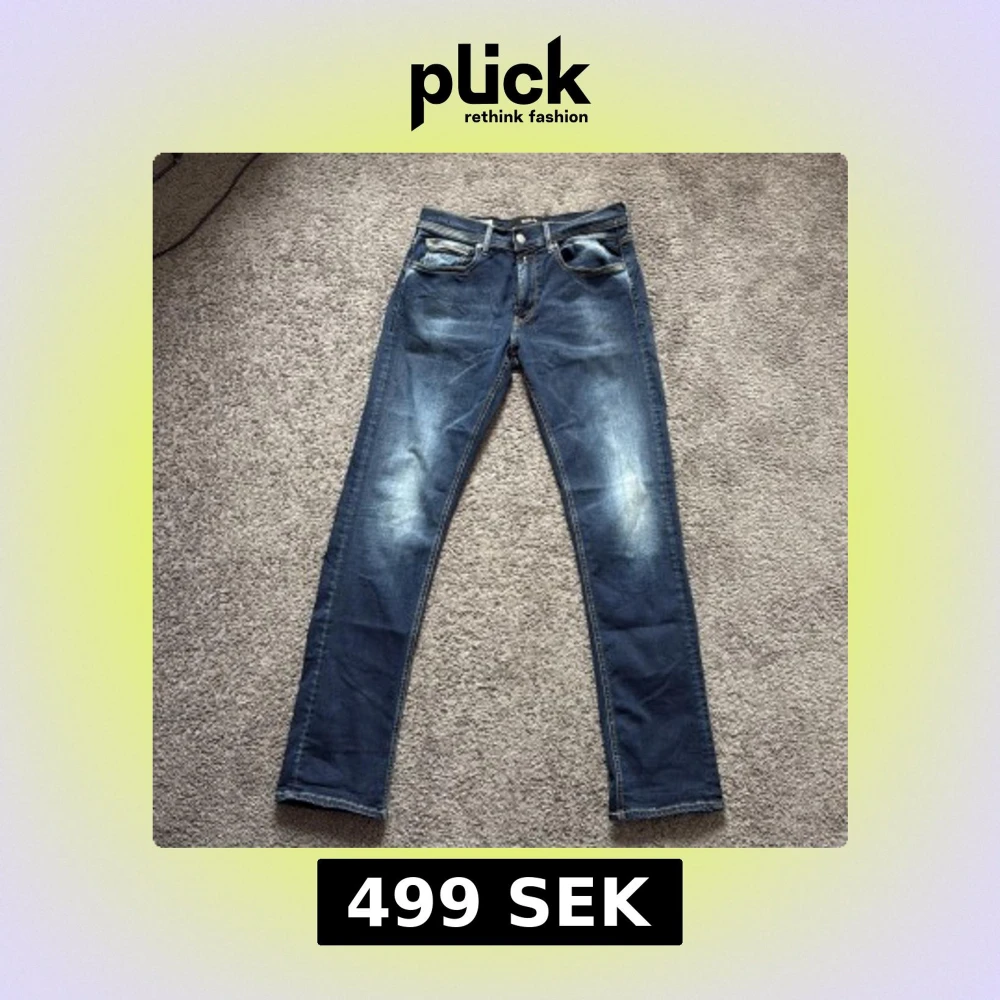 Snygga Replay Hyperflex Grover jeans i mörkblå tvätt med coola slitningar framtill. Klassisk femficksmodell med kontrastsömmar och läderpatch bak. Stretchigt material som sitter skönt och följer kroppen. Perfekt för dig som gillar stilrena och moderna jeans.