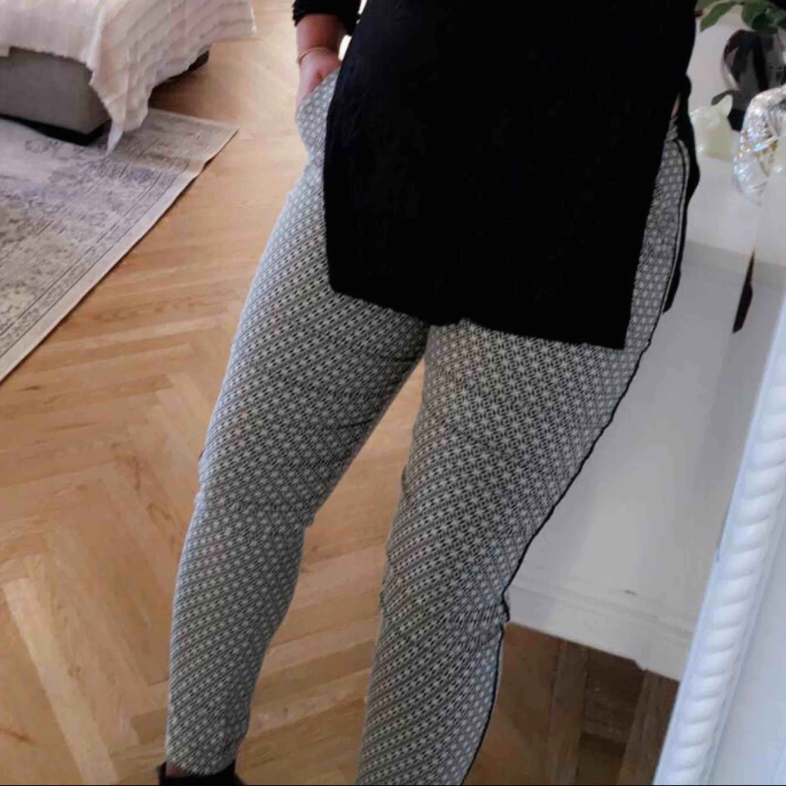 Mönstrade byxor med en ankel längd svart liten skin rand på sidorna
