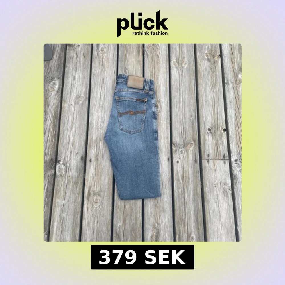 Nudie jeans med två slitningar vid era knän. Jätte snygga jeans som passar till vilken outfit som helst! Lappen är lite urtvättad men det syns knappast.Modellen är skinny sam. Nypris är ungefär 1600kr!