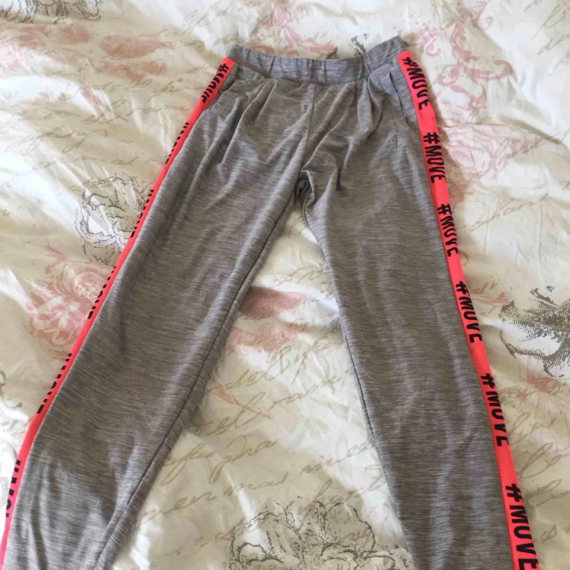 Ett par byxor som är i använt skick, har en liten fläck vid foten men tycker själv inte att det syns. Står ingen storlek men tycker att de passar på mig som har XS/S. De är också högmidjade. PS: tar bara frakt och det kostar 70kr.💗