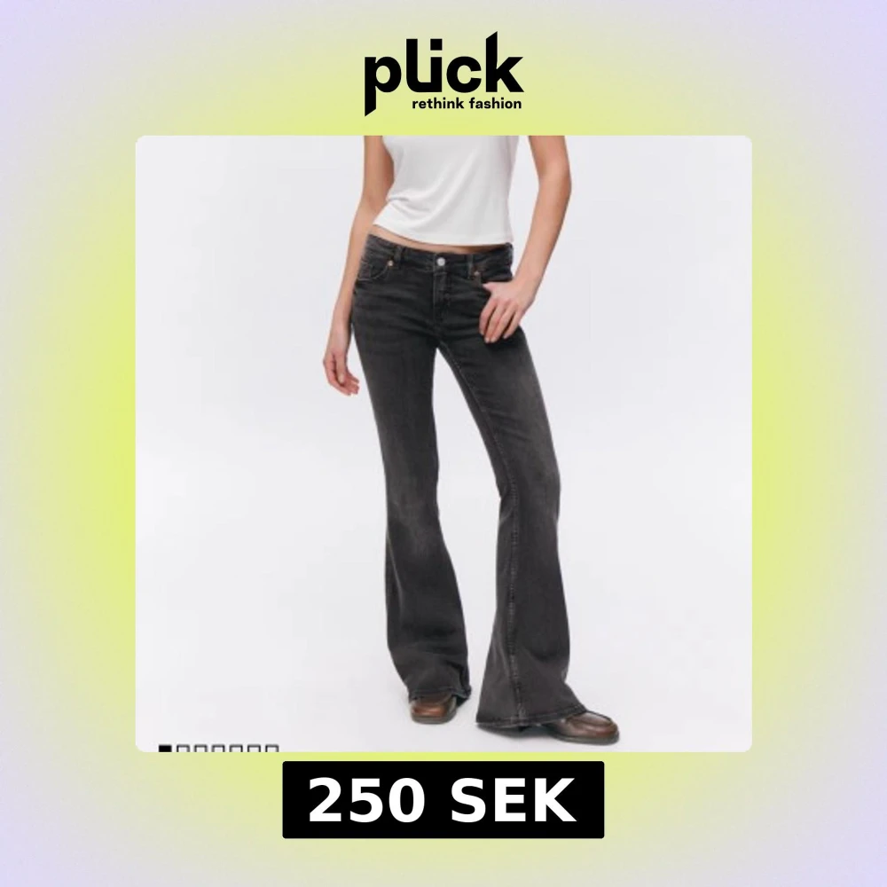 Säljer dessa svarta populära lågmidjade bootcut jeanseni storlek 38, har vanligtvis 36 på jeans men dessa passar superbra. Passar även perfekt för mig som är 168cm💞