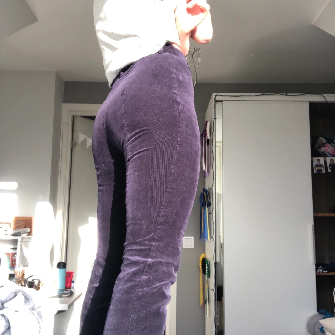 Säljer dessa superfina långa lila brallor!! Tyvärr för små i midjan för mig :( jag är 163 cm lång och de går typ till hälen på mig 💚