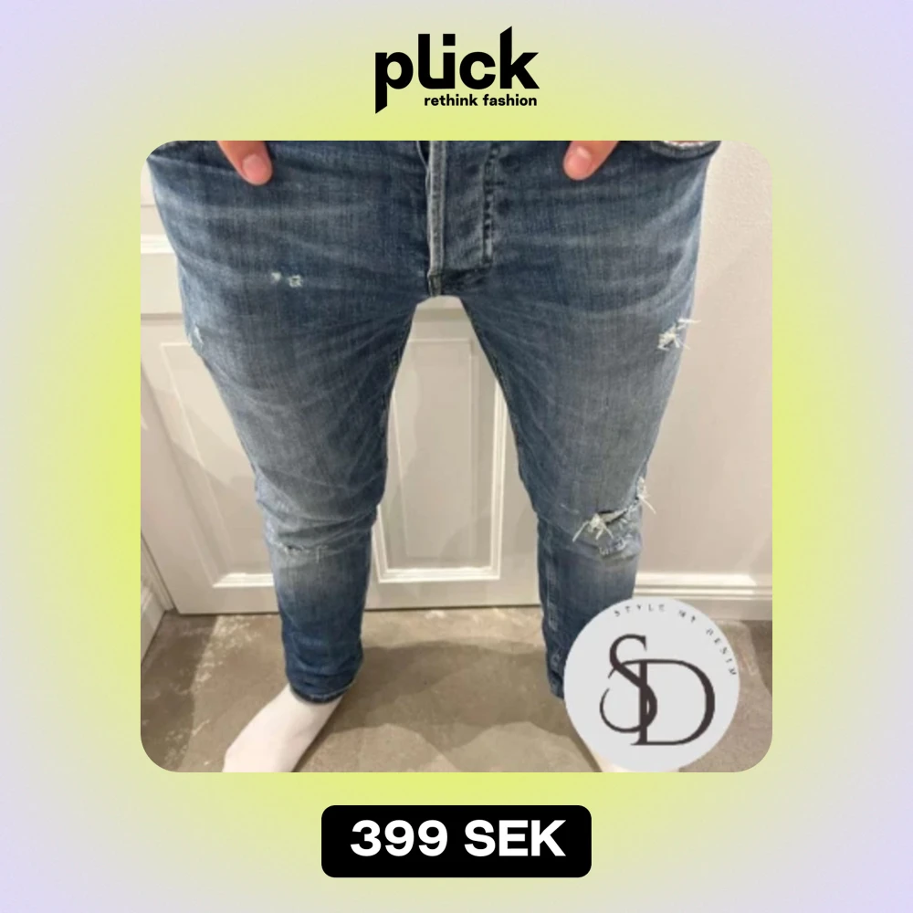 Jack and Jones slim fit jeans, storlek 32-32. Väldigt snygga och unika slitningar. Pris 399kr🔥🔥