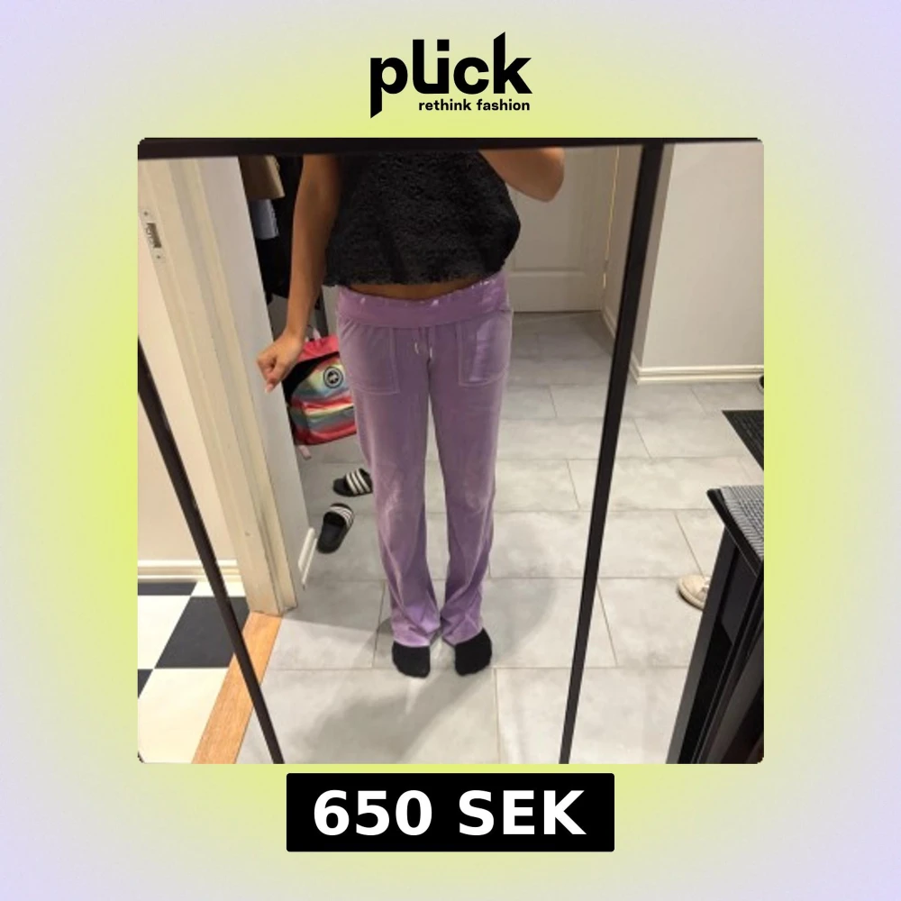 Säljer ett par ljuslila juicy couture mjukisbyxor med raka ben och snörning i midjan. Byxorna har stora fickor fram och bak, samt en bekväm passform. Perfekta för en chill och avslappnad stil. Orginalpris 1100