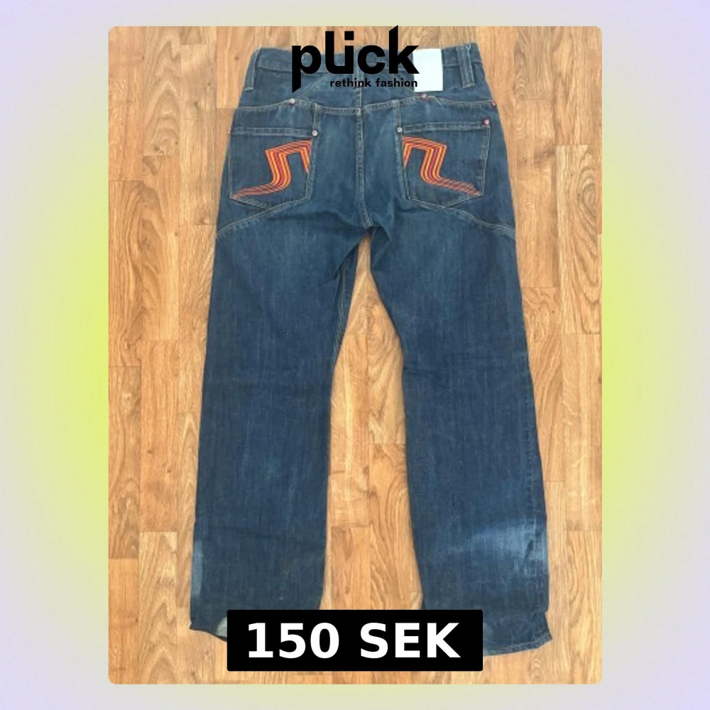 Snygga blå jeans från J.Lindeberg med coolt orange och rött broderi på bakfickorna. Klassisk femficksmodell med raka ben och kontrastsömmar. Röd detalj vid knapphål och nitar ger extra edge. Perfekt för dig som gillar street och sportig stil.