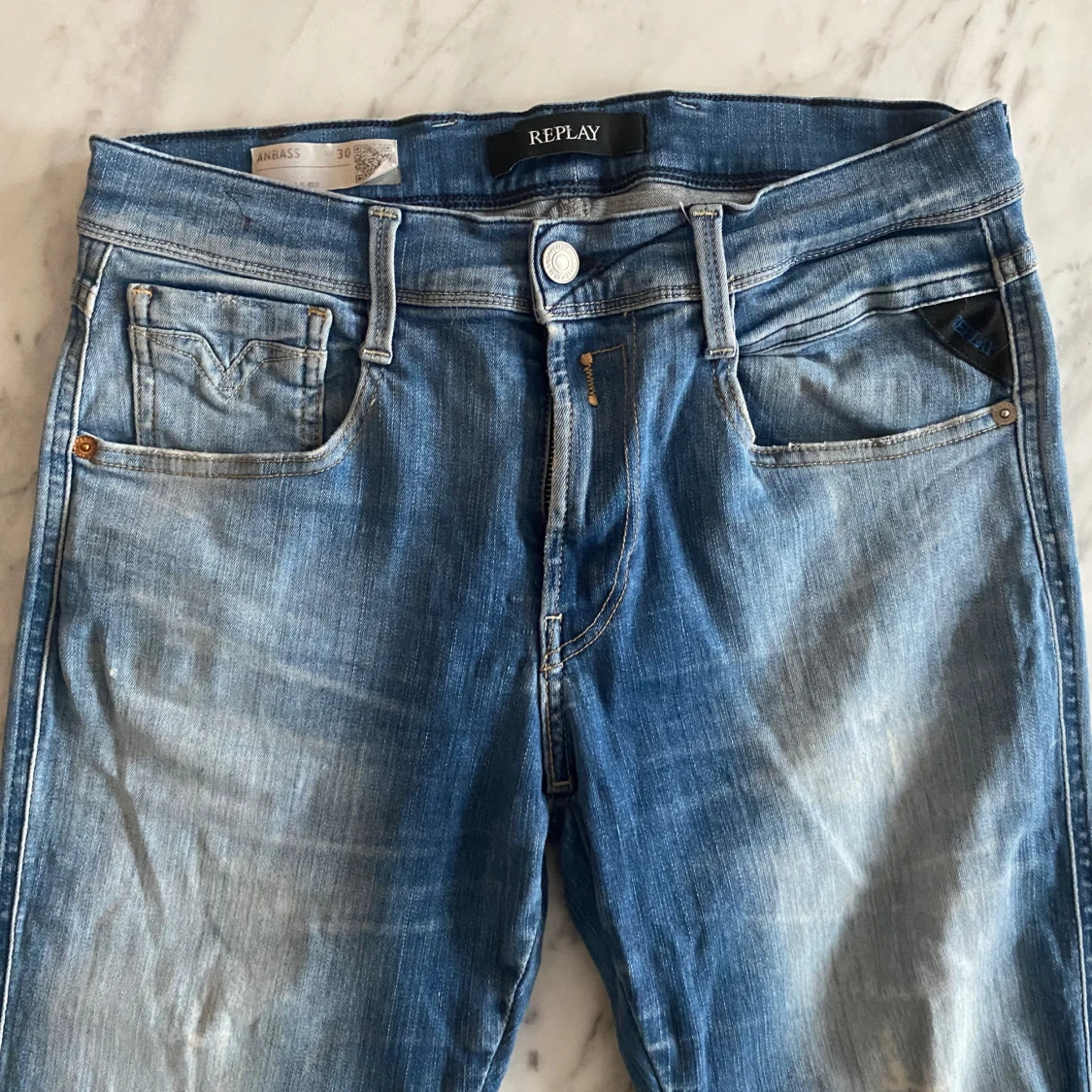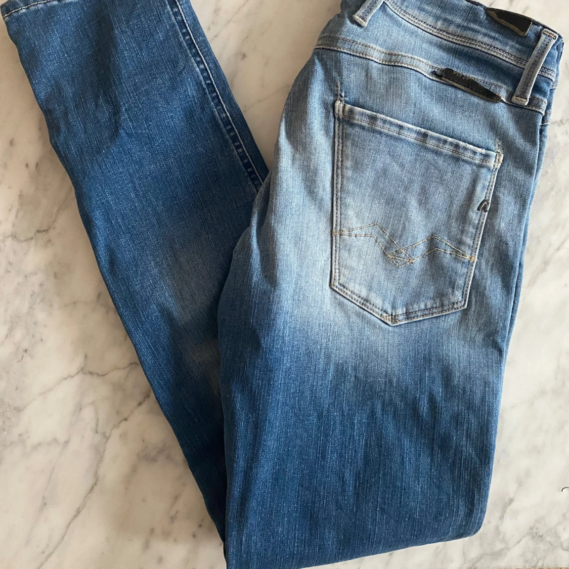 Snygga blå jeans från Replay med en klassisk femficksdesign och ljusare tvätt. De har en knappgylf och är perfekta för en avslappnad stil. Märkeslogga syns på baksidan.