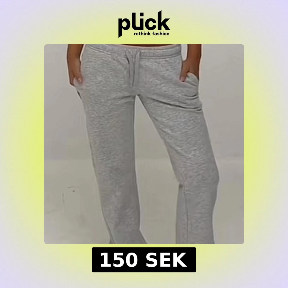 Säljer ett par ljusgrå mjukisbyxor med dragsko i midjan och raka ben. Byxorna har fickor på sidorna och är tillverkade i mjukt bomullsmaterial. Perfekta för en avslappnad stil och superbekväma att ha på sig.