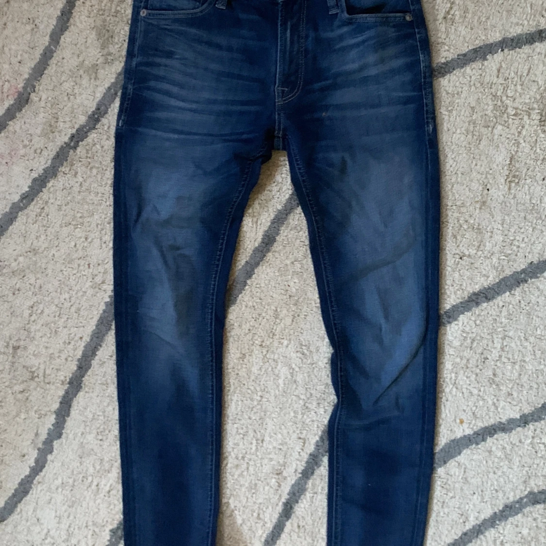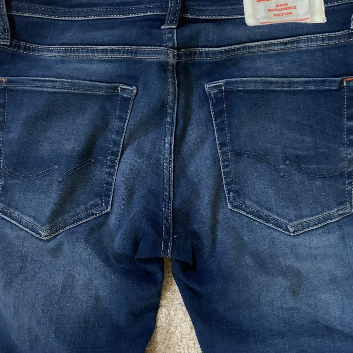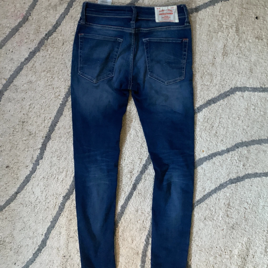 Snygga mörkblå skinny jeans från Jack & Jones med klassisk femficksdesign och diskreta slitningar. Jeansen har normal midja och smal passform hela vägen ner. Perfekta för dig som gillar en tajt look och vill ha ett par stilrena jeans i garderoben.