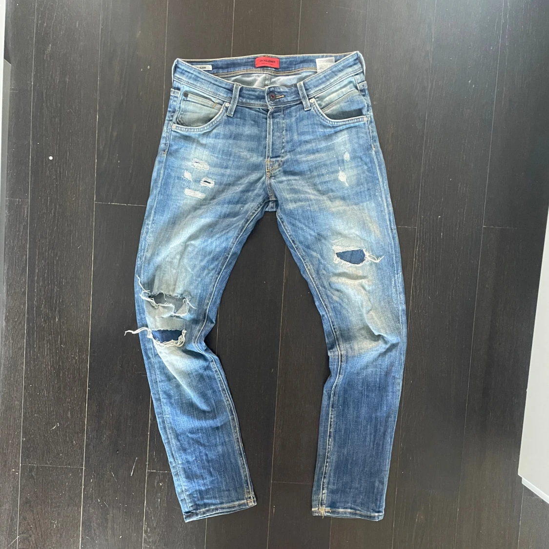 Säljer ett par feta Jack and Jones jeans med slitningar. De är för stora på mig därav säljs dem. De är slim-fit. Hör av dig om du har frågor! Pris kan diskuteras.