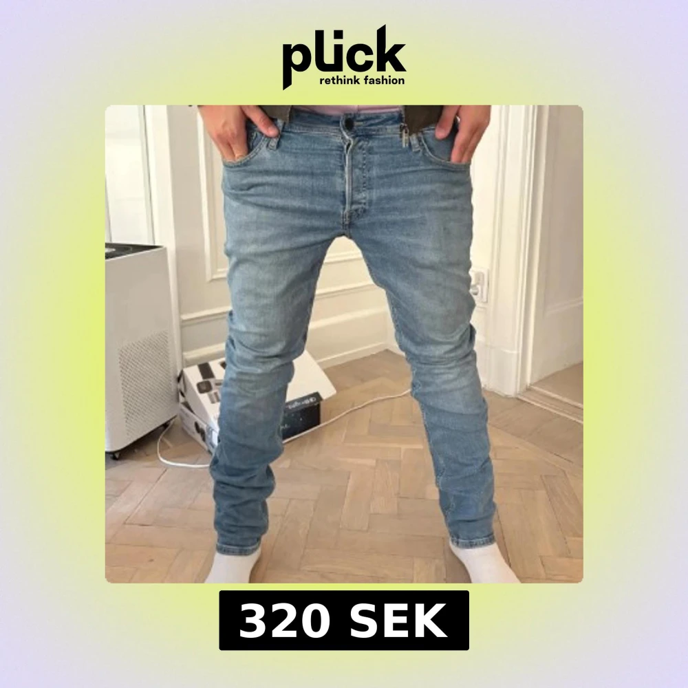 Säljer ett par klassiska blå jeansbyxor med en slim passform. Storlek 32/32, har blixt för små för mig som är 183cm, tveka inte vid funderingar eller vid intresse, riktigt najs färg på dem nu till sommaren, byxorna är från Jack & jones pris kan diskuteras