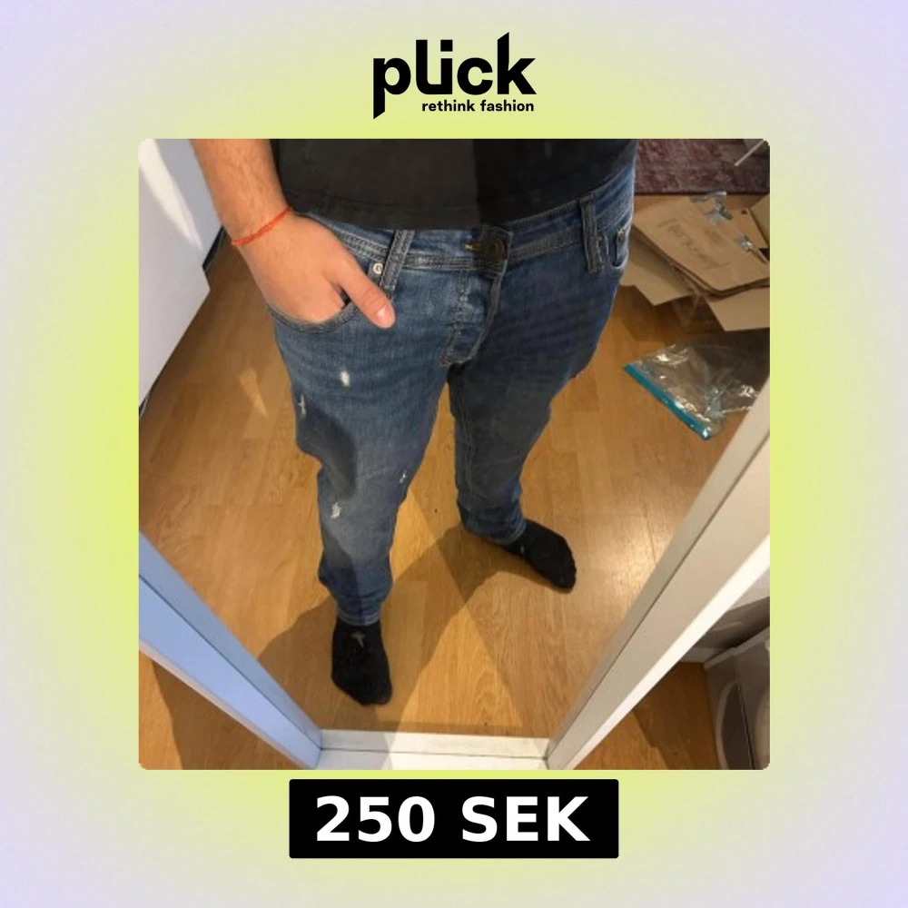 Säljer dessa riktigt feta Jack and Jones jeans med lite slitningar och sitter perfekt med häng dom är i storlek 30 32. Skriv gärna vid funderingar och kom gärna med pris förslag🤝