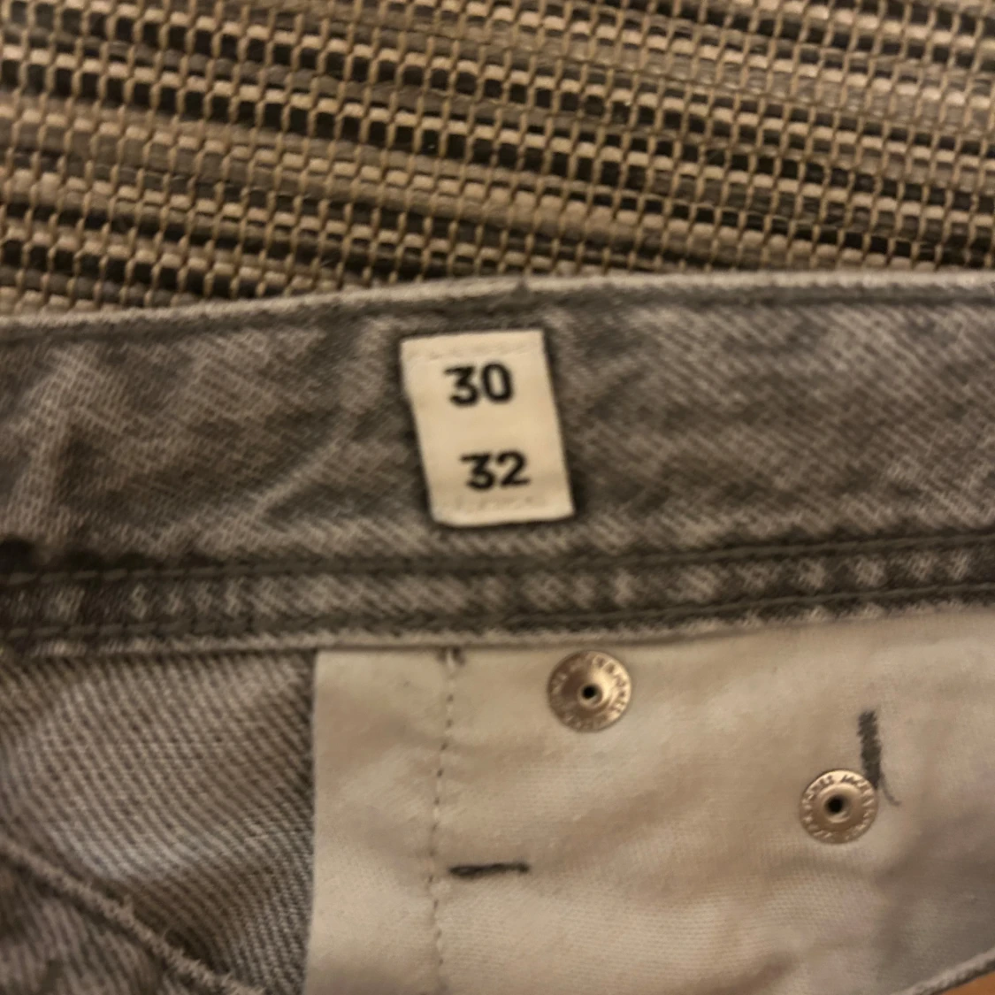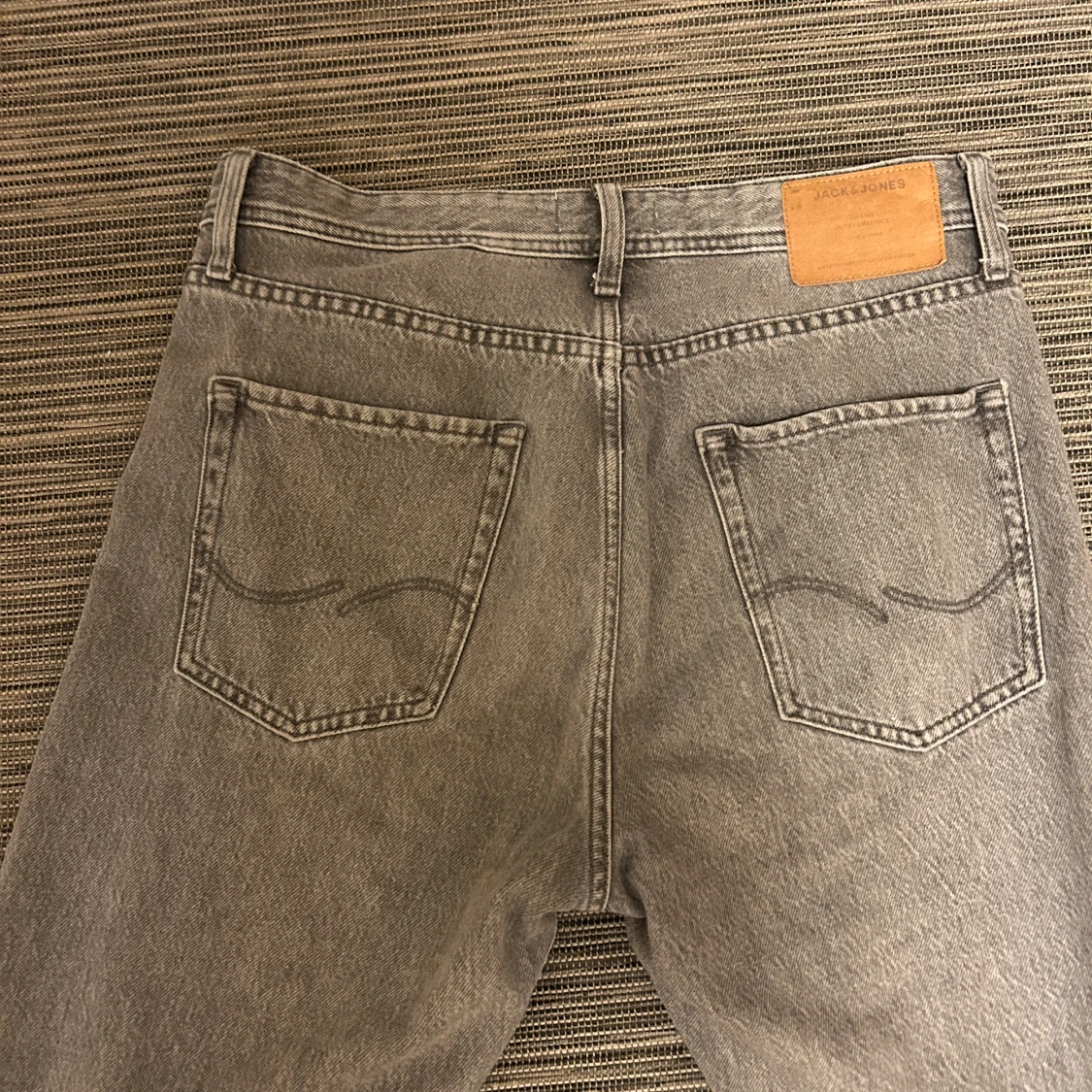 Säljer ett par grå jeans från Jack and Jones i modellen Relaxed/Chris. De har en avslappnad passform med klassisk femficksdesign och knappgylf. Perfekta för en skön komfort och stilig look.