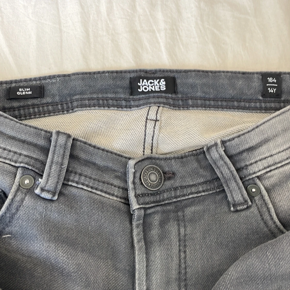 Slim fit grå jeans från Jack & Jones. Storlek 164/14 år. Ändast använd 1 gång och priset kan diskuteras