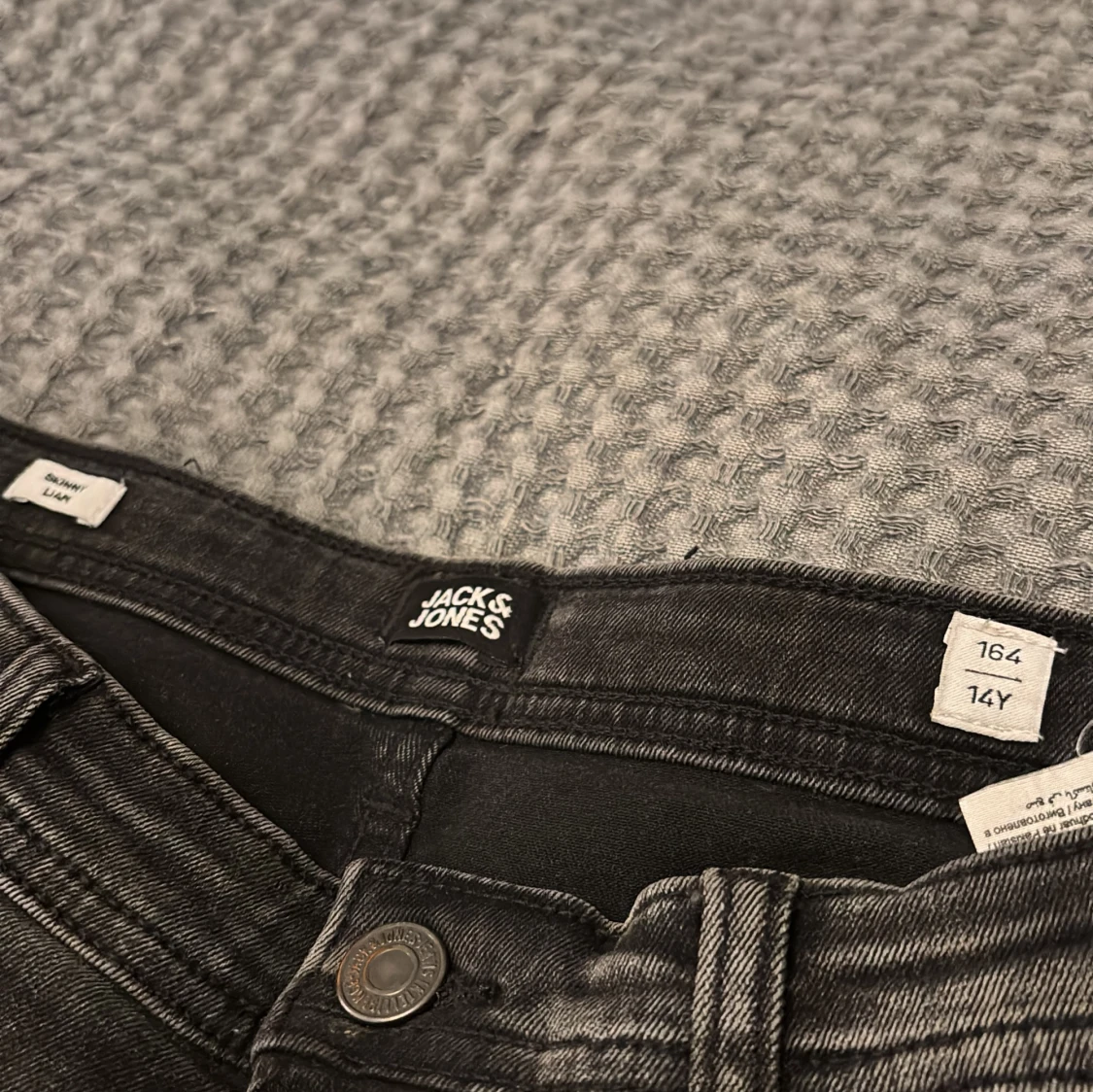 Säljer ett par svarta Jack & Jones jeans i storleken 14/16 Skinny Liam. Använda några gånger men sen var de för små tyvärr. Skulle säga att de passar någon mellan 150-160 (beror på hur mam vill att de sitter på såklart) ✅Skriv till vid minsta funderingen! /Gustav 😊