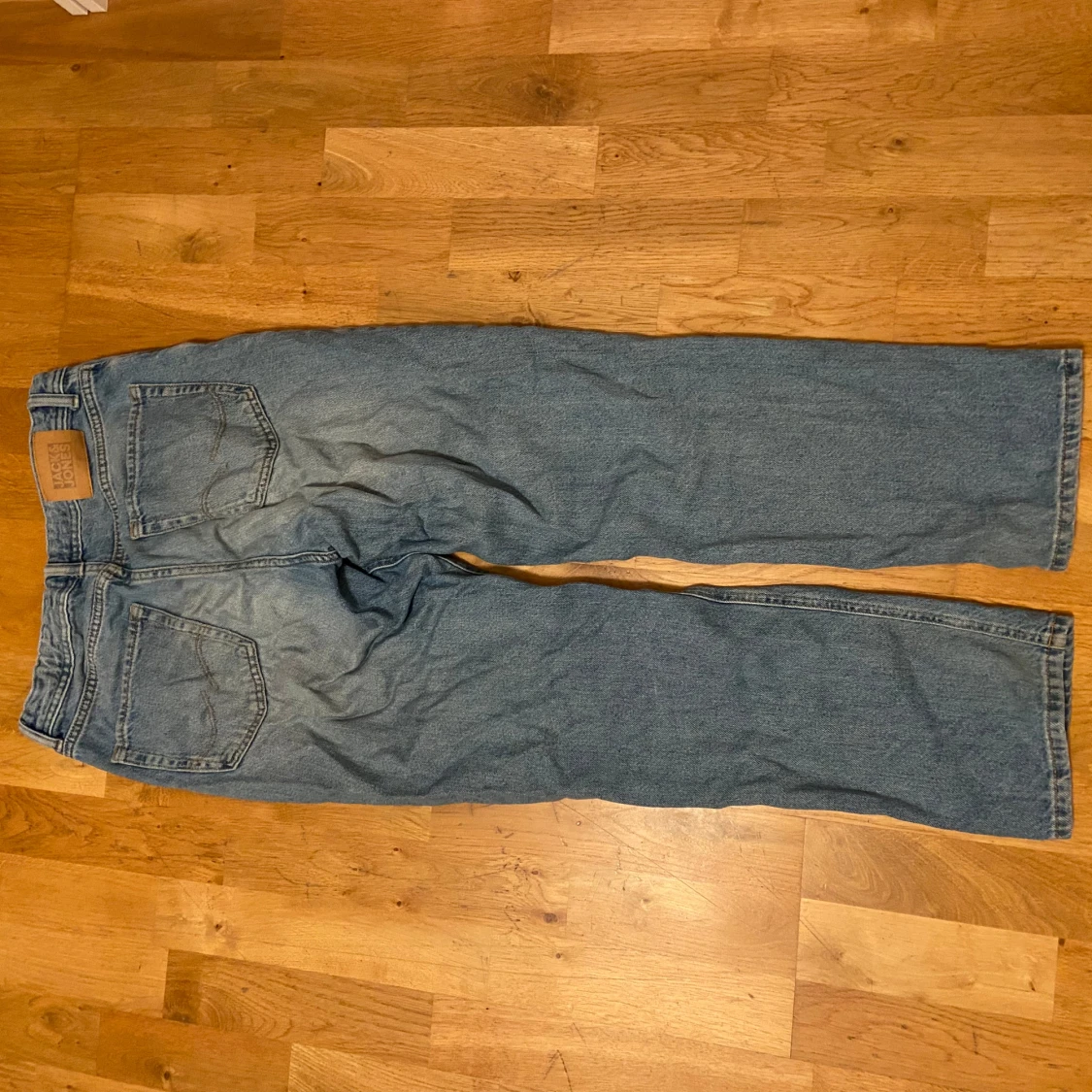 Säljer ett par blå jeans från Jack & Jones i storlek 170/15y. De har en avslappnad passform och är perfekta för vardagsbruk. Jeansen har en klassisk femficksdesign och är i bra skick. Perfekta för både höst och vår!