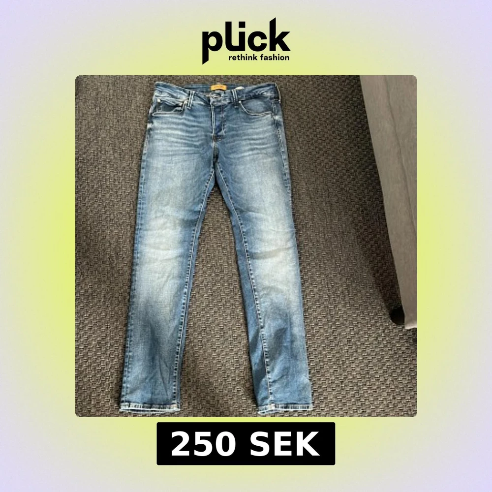 Säljer ett par klassiska blå jeans från Jack & jones med raka ben och fem fickor. Perfekta till vardags och funkar året runt.