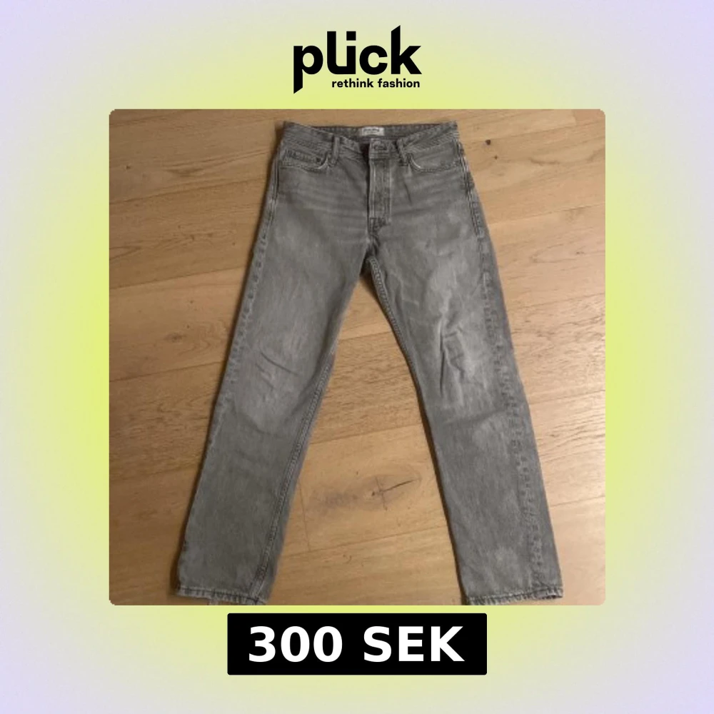 Säljer ett par snygga jeans från Jack & Jones i loose fit. Iite skadade Iängst ner och på bak fickorna syns på bild Annars fina byxor. Hör av dig vid funderingar om byxorna.