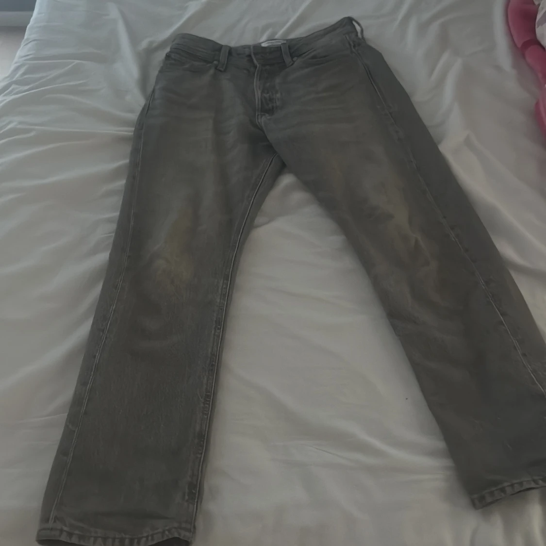 Gråa jeans från Jack & Jones i modellen Relaxed/Chris. Jeansen har en avslappnad passform med raka ben och klassisk femficksdesign. Tillverkade i mjukt jeanstyg med snygg tvättad look och bälteshällor i midjan.