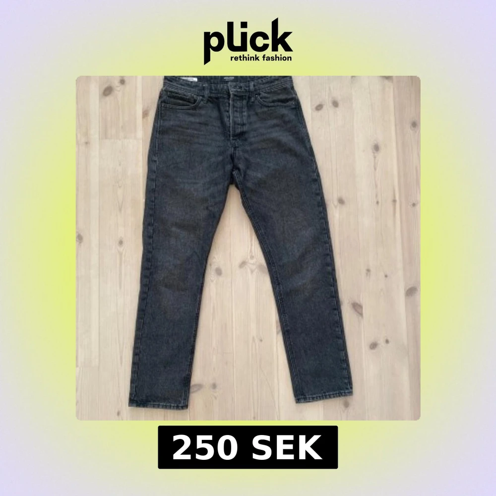Säljer ett par svarta jeans från Jack & Jones i modellen Loose/Chris. Jeansen har loose fit, klassisk femficksdesign och raka ben. Materialet är denim och färgen är tvättad svart med lite slitningseffekt. Perfekta för en avslappnad stil.