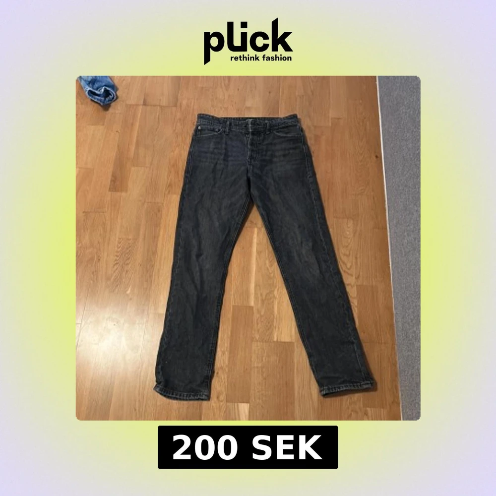 Säljer ett par svarta loose fit jeans från Jack & Jones, modell Loose/Chris. Jeansen har klassisk femficksdesign, raka ben och är tillverkade i slitstarkt denim. Perfekta för dig som gillar en avslappnad och bekväm stil.