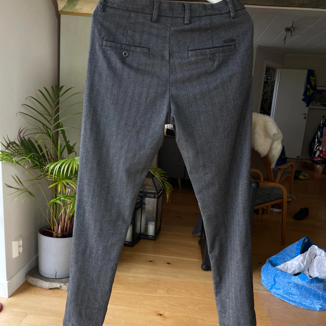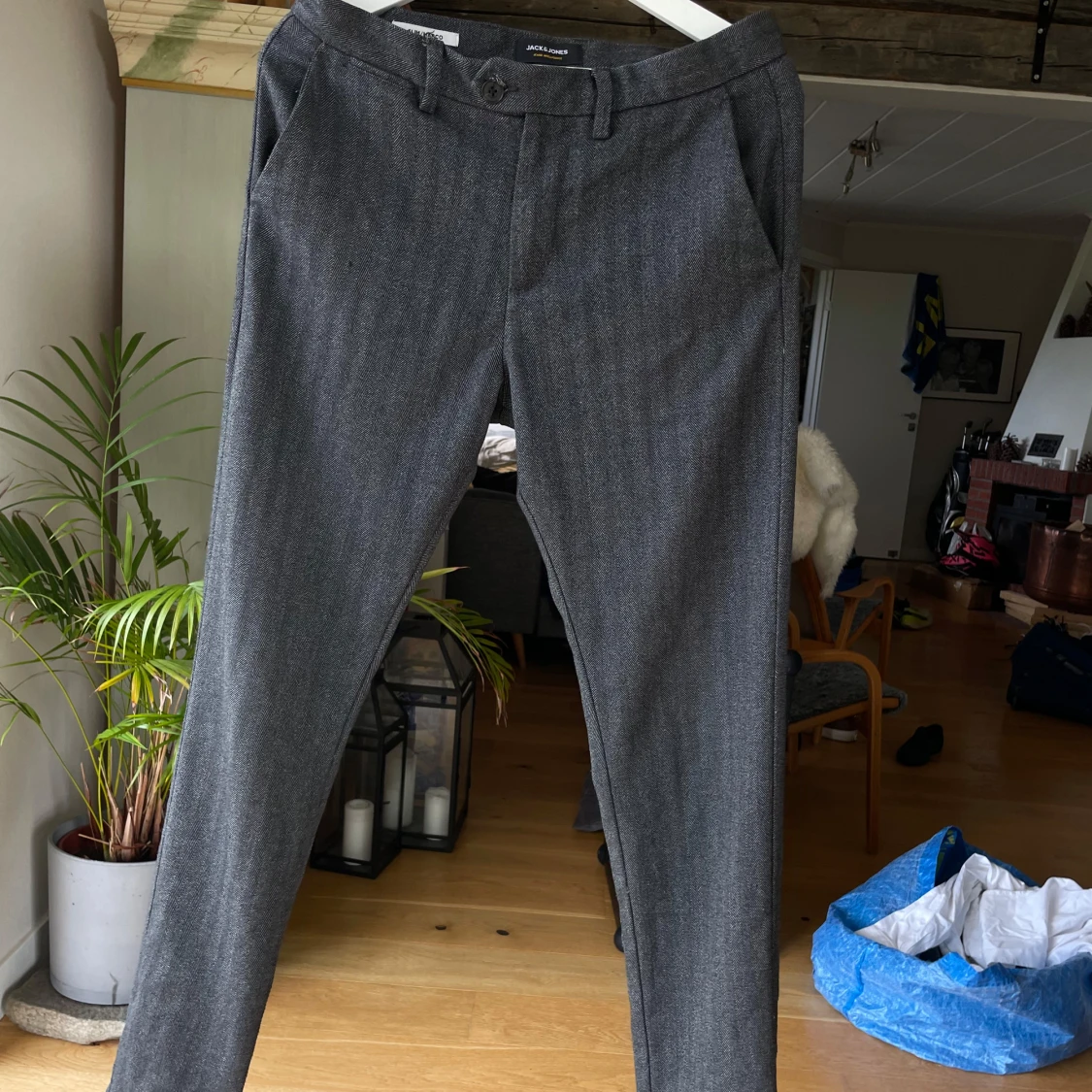 Snygga grå kostymbyxor från Jack & Jones i modellen Marco. Väldigt bra skick på dessa och framför allt skönt material. Sitter som en smäck! Säljes åt min pojkväns lillebror då han har växt ur dom. Passar någon som är runt 185 cm❣️❣️❣️