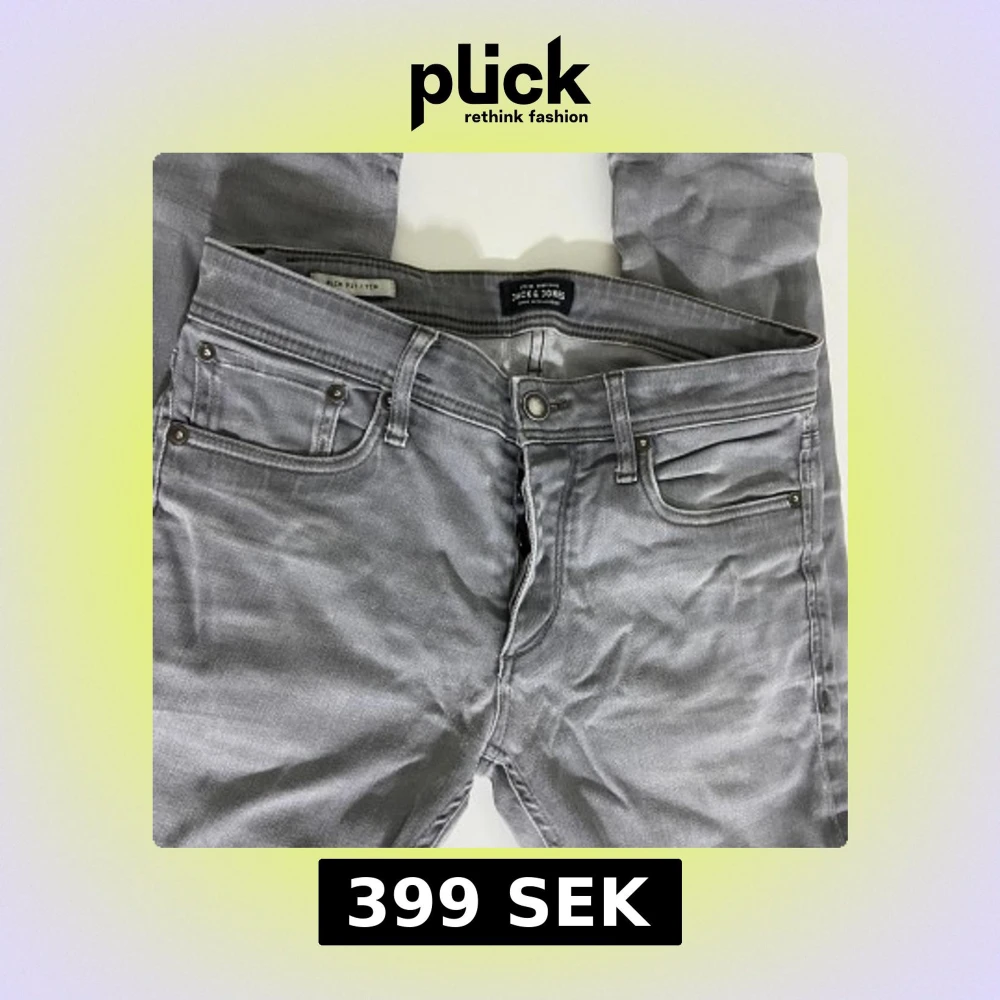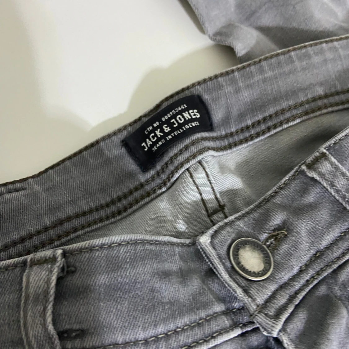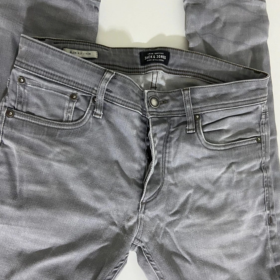Snygga grå jeans från Jack & Jones i modellen Slim Fit Tim. Klassisk femficksdesign med dragkedja och knapp framtill. Jeansen har en smal passform och är tillverkade i mjukt bomullsmaterial med lite stretch för extra komfort.