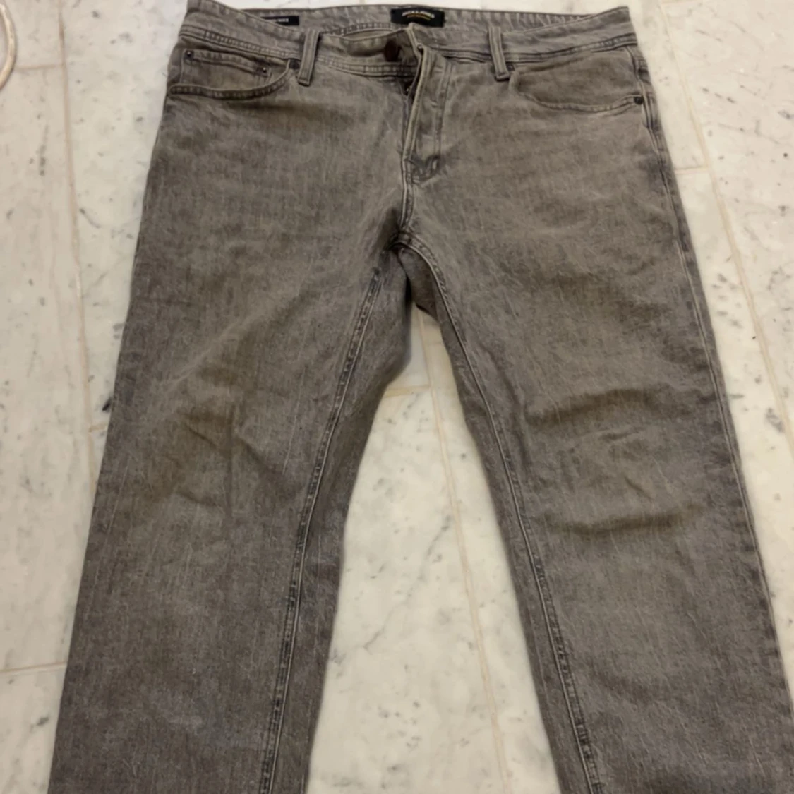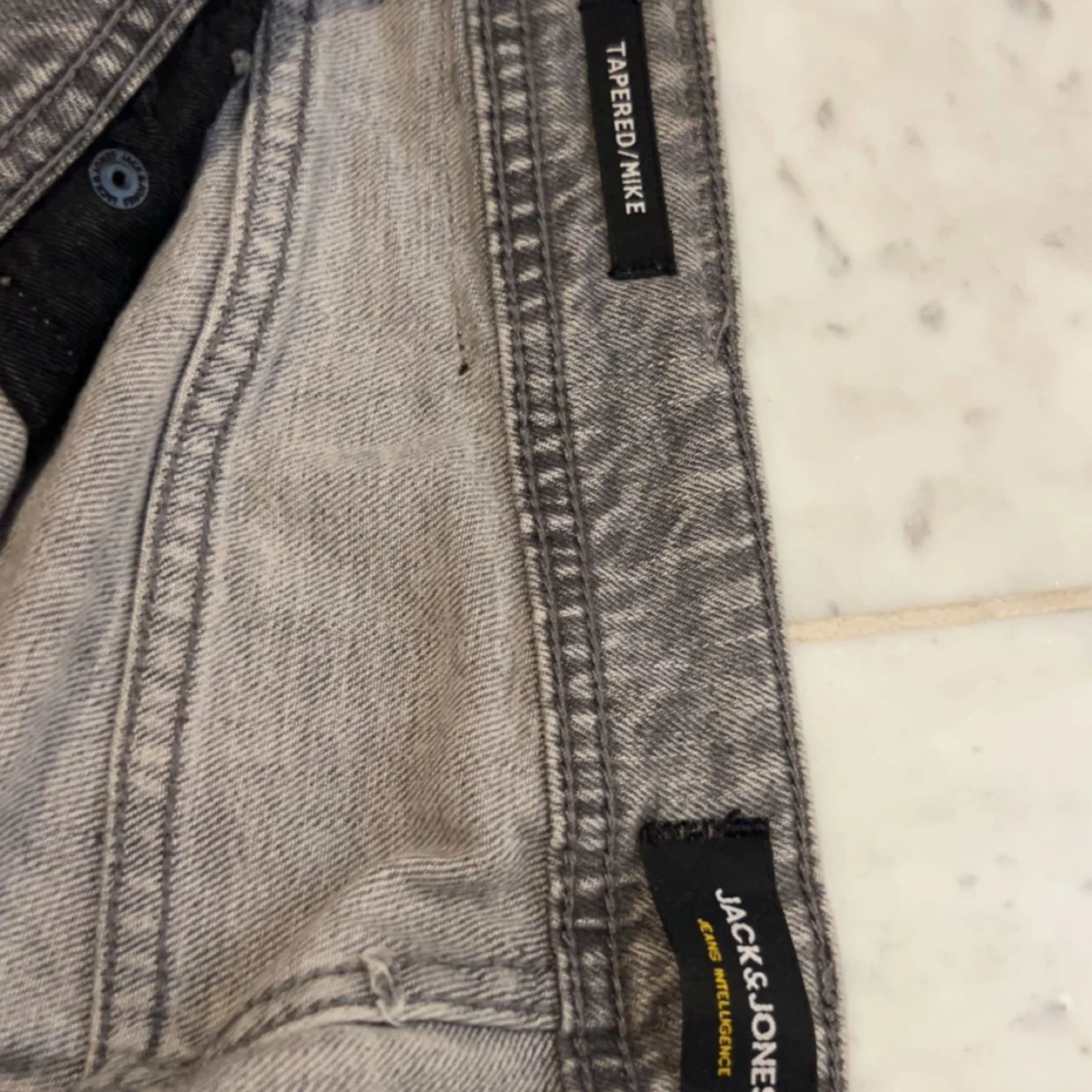 Snygga grå jeans från Jack & Jones i modellen Tapered Mike. Jeansen har en avsmalnande passform, klassiska fem fickor och är tillverkade i mjukt denimtyg. Perfekta för dig som gillar en avslappnad men ändå stilren look.