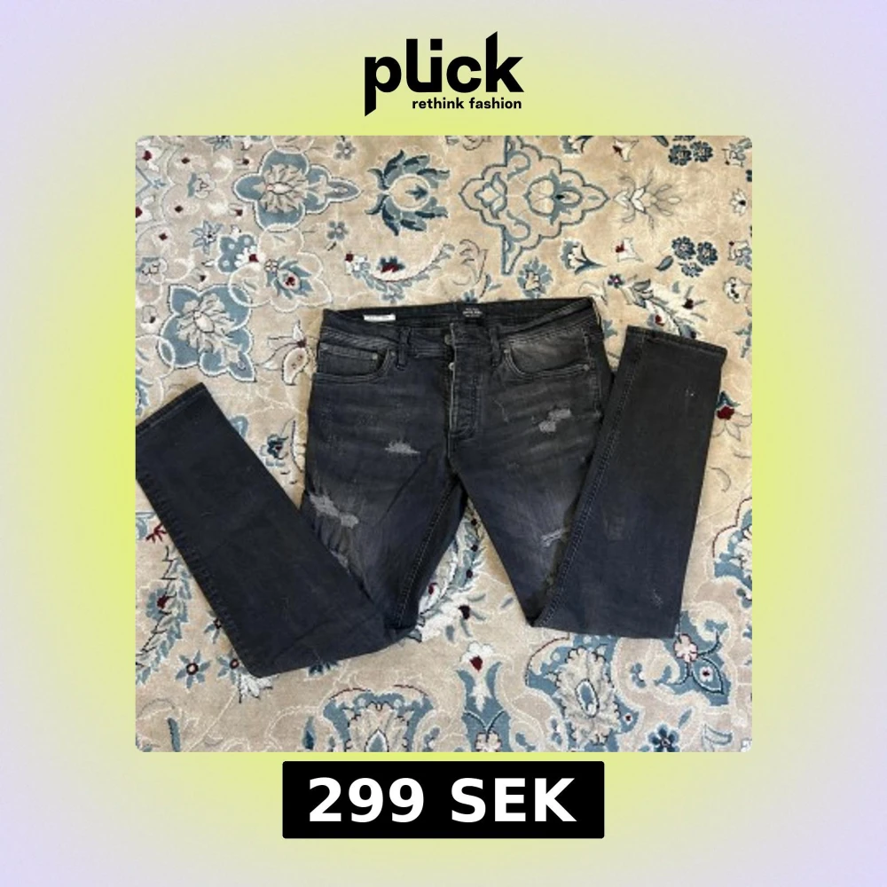 Svarta slim fit jeans från Jack & Jones, modell Glenn. Jeansen har slitna detaljer och lagningar för en cool, använd look. Klassisk femficksdesign och stretchigt material som sitter tajt längs benen. Perfekta för dig som gillar en modern och edgy stil.