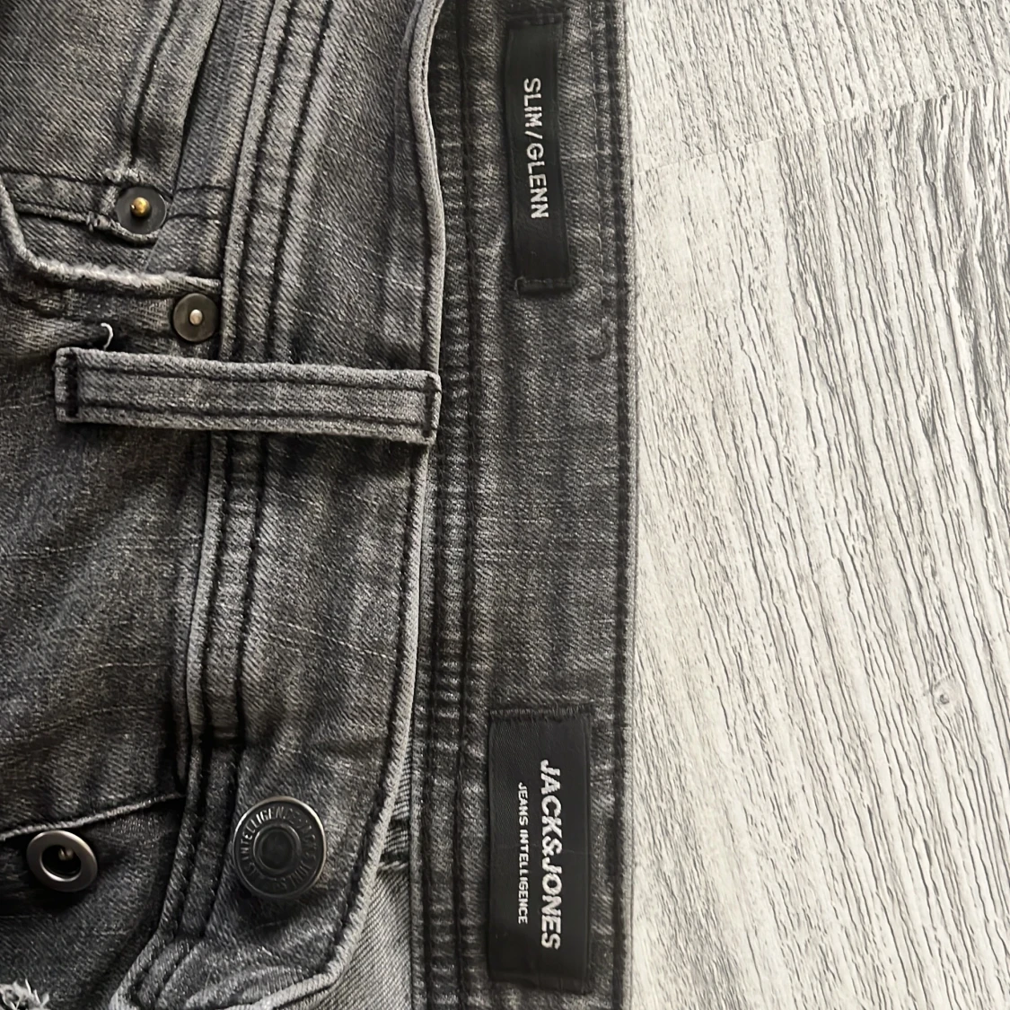 Slim Glenn jeans från Jack & Jones i en snygg grå tvätt. Modellen har smal passform, klassisk femficksdesign och normal midja. Jeansen är tillverkade i stretchig denim för extra komfort och har subtila slitningar för en cool look.