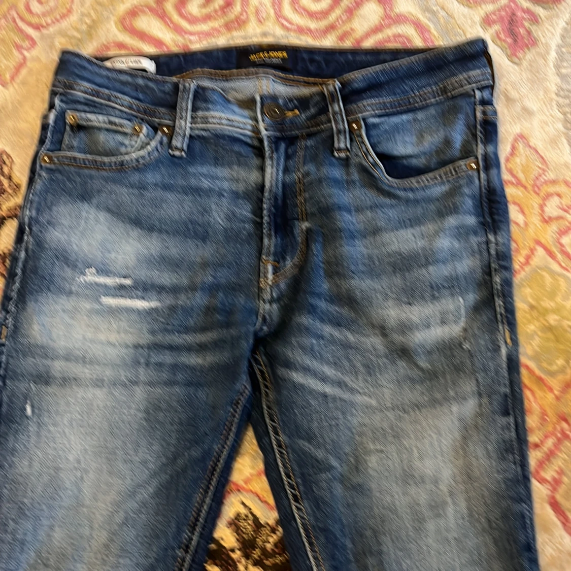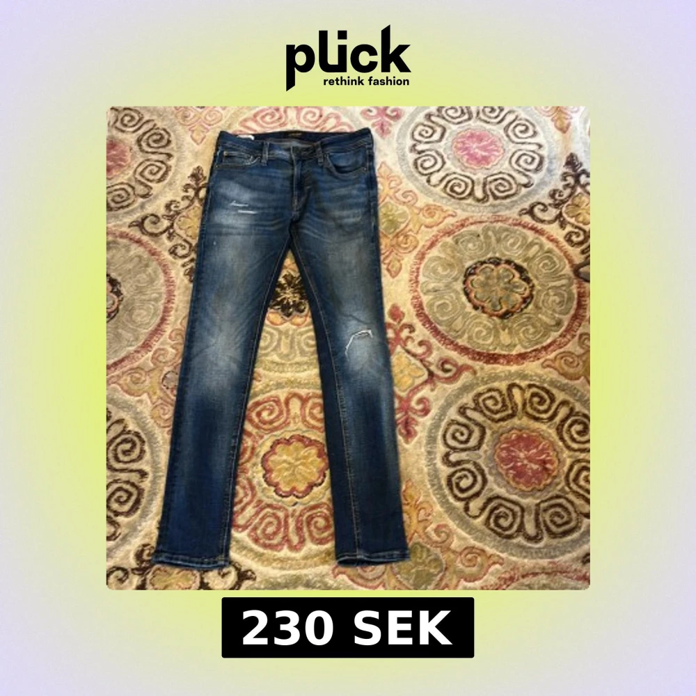 Jag säljer nu mina jeans pågrund av att jag inte använder dom längre. Dom är i storlek 30/32 och alla slitningar på jeansen är fabriks gjorda. Dem är i väldigt bra skick skriv vid frågor