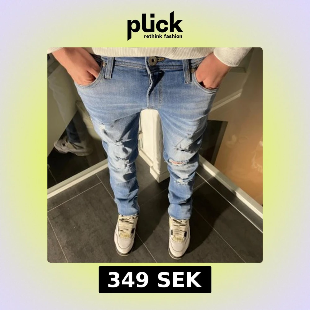 Ljusblå Jack & Jones Jeans med slitningar - Skinny/Liam - W28 L32 - Skick 9/10 - Hör av er vid minsta fundering!