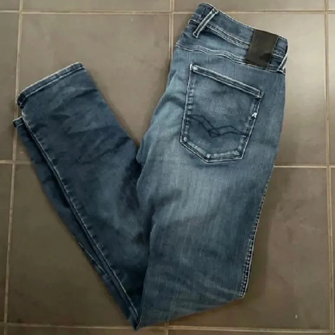 Säljer nu mina riktigt snygga replay hyperflex jeans. De har en liten skråma på högra knät men det är inget hål eller andra skador. Storleken är 34/34. Bara att skriva vid frågor😁