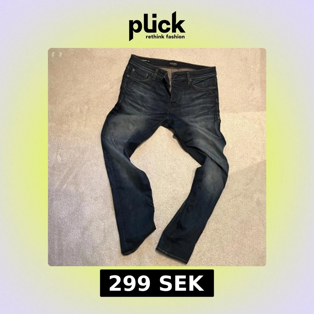 Snygga mörkblå jeans från Jack & Jones med klassisk femficksdesign och bruna sömmar. Jeansen har en straight/slim passform och är tillverkade i slitstarkt denim med lätt tvättad look. Perfekt för dig som gillar stilrena och tidlösa jeans.