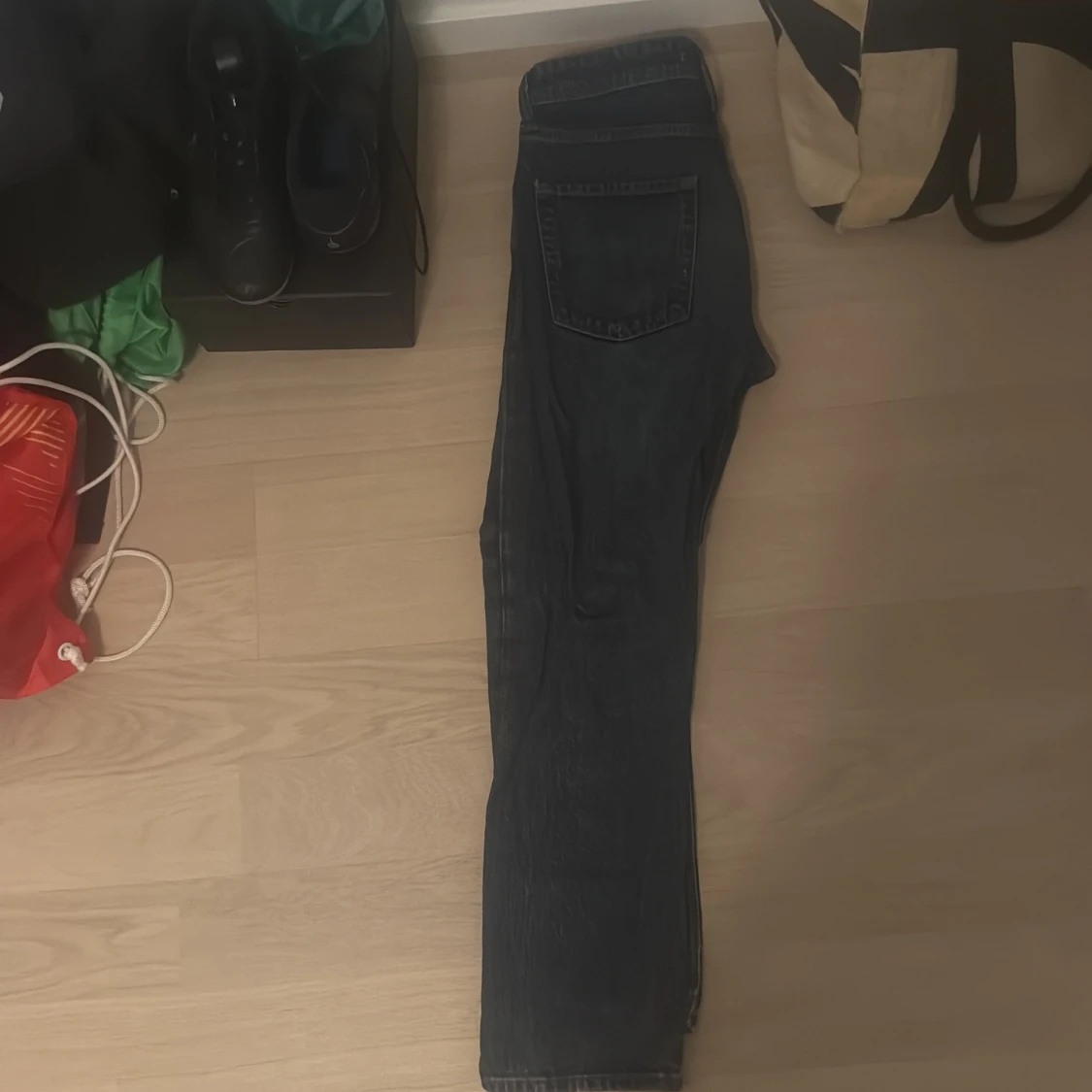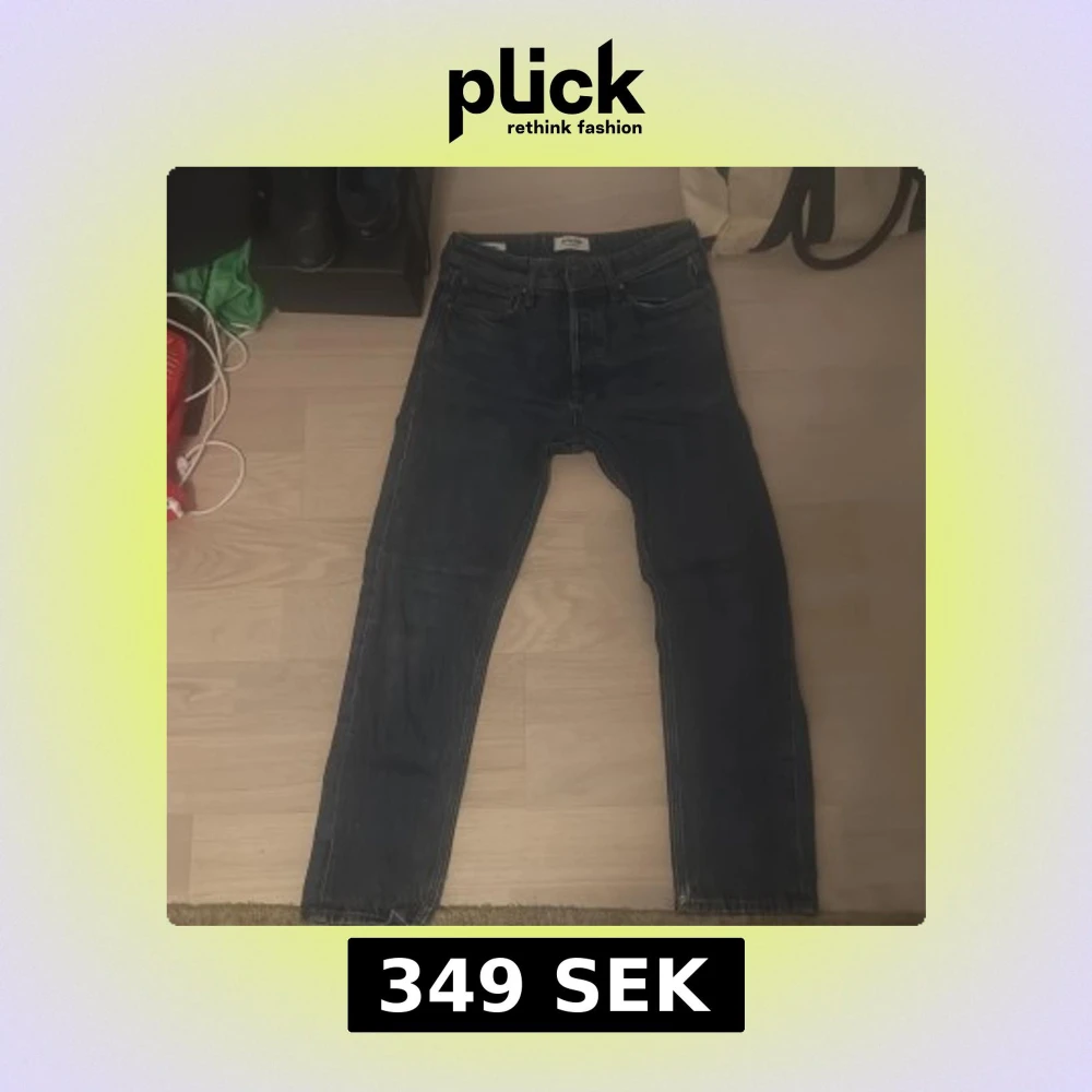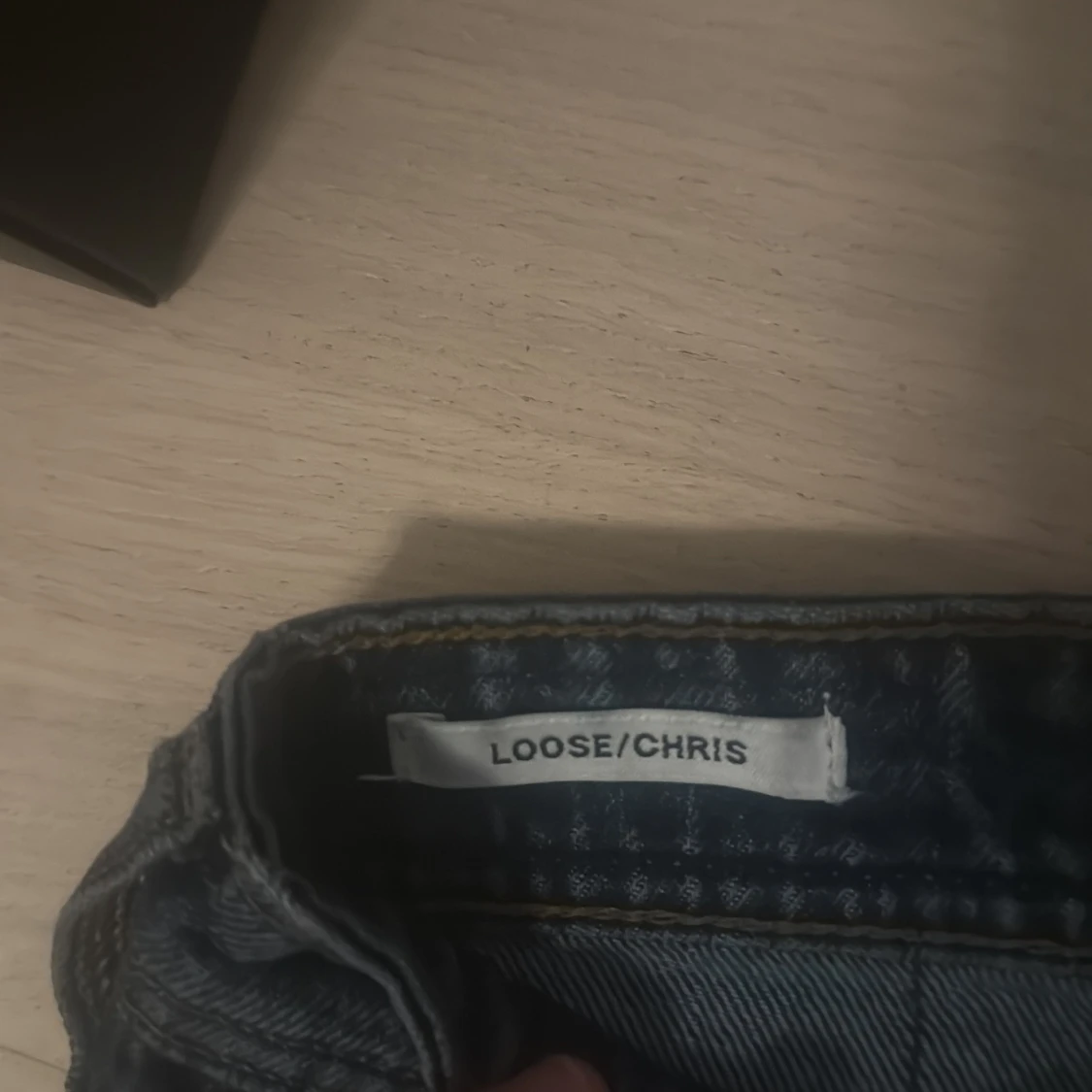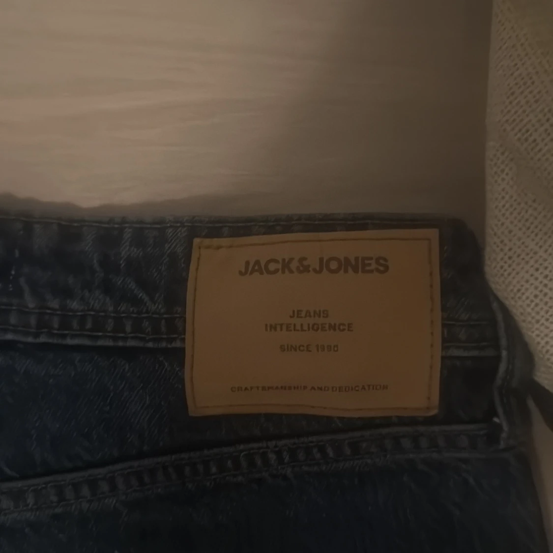 Säljer ett par blå jeans från Jack & Jones, modell Loose Chris. Jeansen har en loose passform med raka ben och klassisk femficksdesign. Tillverkade i denim med snygg tvättad look och läderpatch bak i midjan. Vid funderingar så är det bara att skriva ✍️ ✅