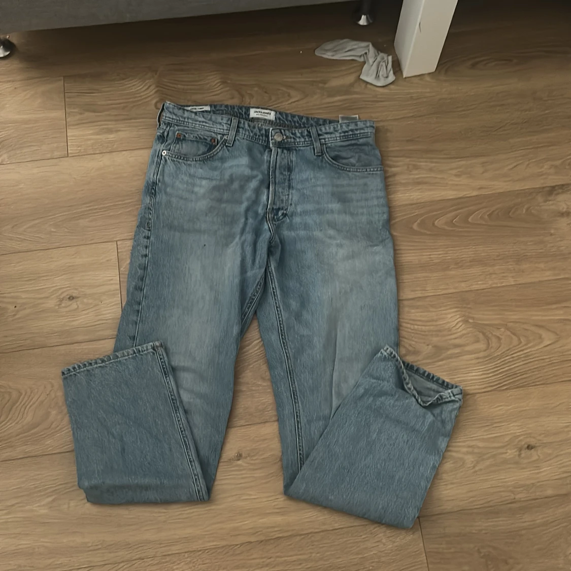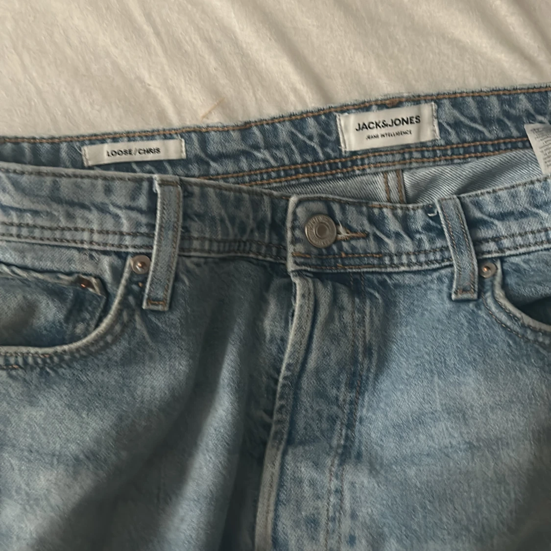 Ljusblå jeans från Jack & Jones i modellen Loose Chris. Jeansen har en loose fit med raka ben, klassisk femficksdesign och knappgylf. Tillverkade i bomull med snygg tvättad look och kontrastsömmar. Perfekta för en avslappnad stil.