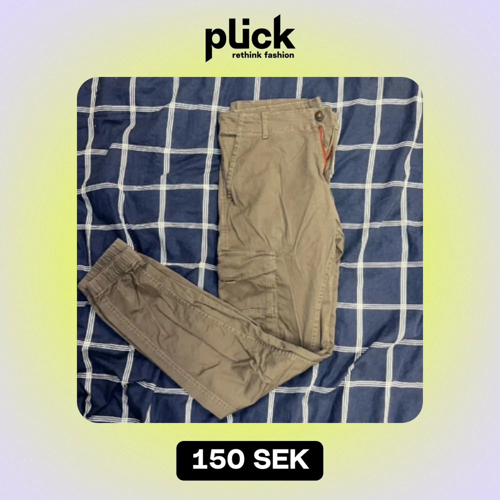 Bruna cargo buxor från JACK&JONES med benfickor, storlek W32 L34, nypris runt 500 kr.