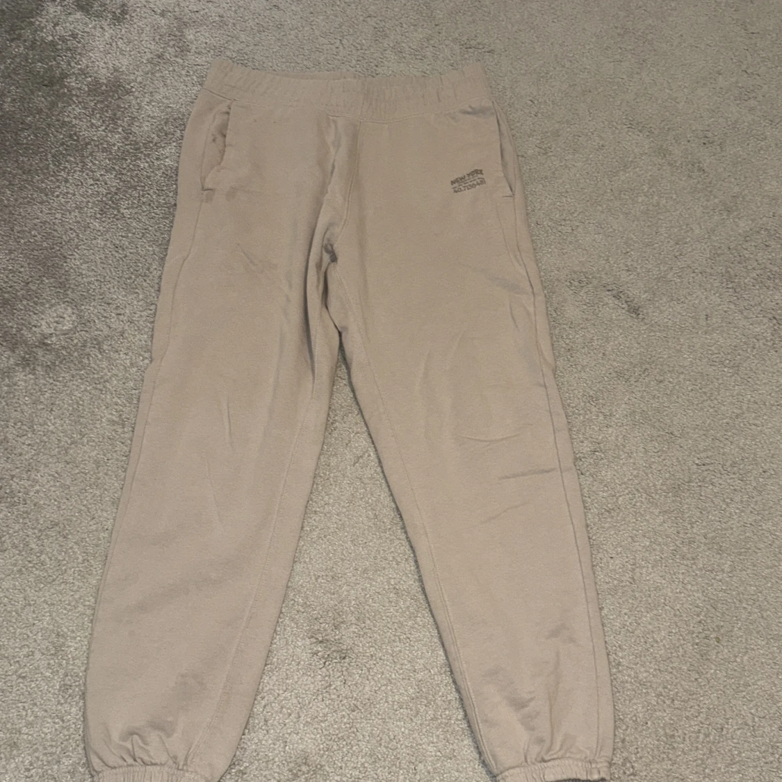 Beiga mjukisbyxor från Jack & Jones med resår i midjan och vid bensluten. Byxorna har sidofickor och en liten logga på vänster sida. Perfekta för chill dagar eller när du vill vara extra bekväm.