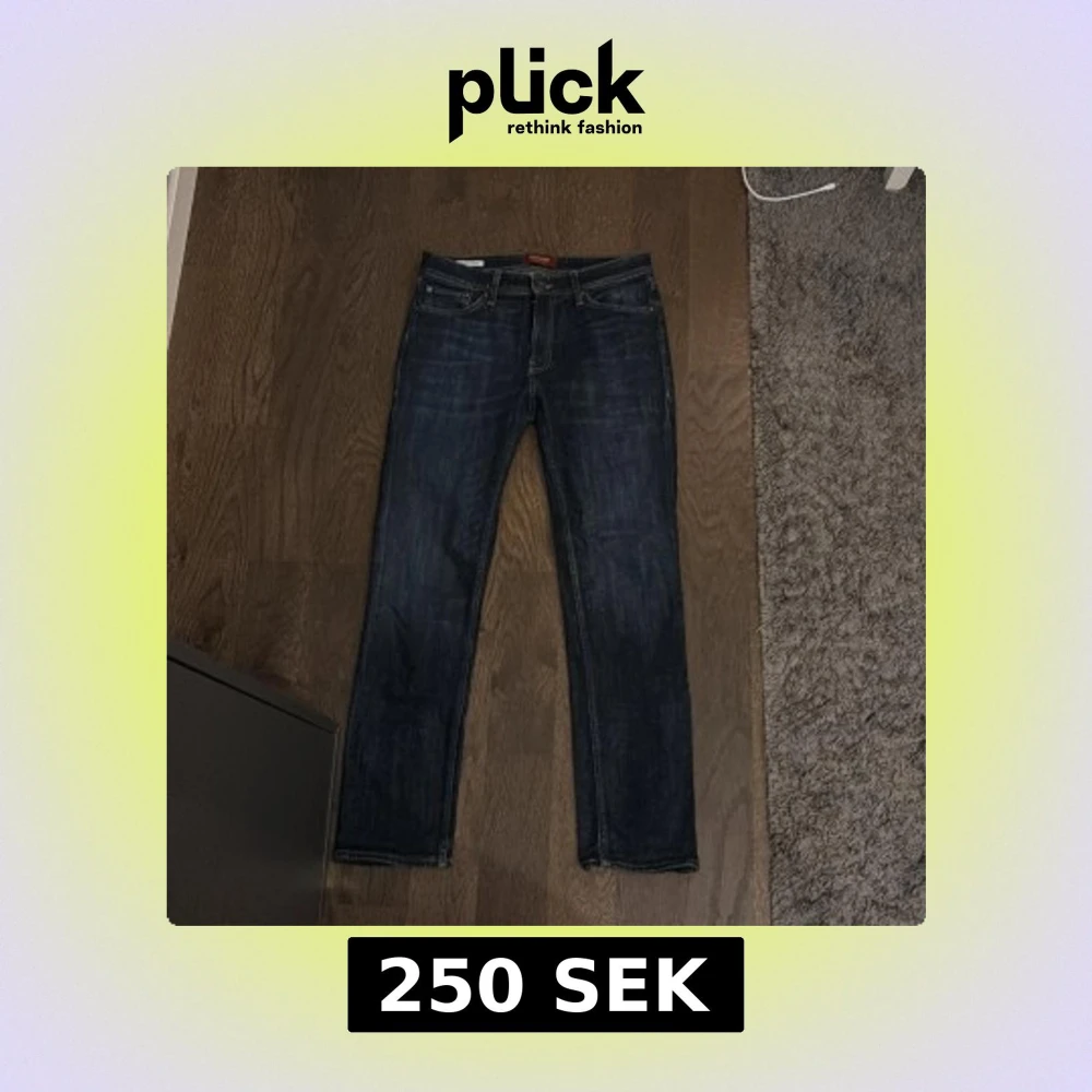 Snygga mörkblå jeans från Jack & Jones, modell Clark. Klassisk femficksdesign med raka ben och normal passform. Jeansen har en cool tvättad look och är tillverkade i slitstarkt denimtyg. Perfekta för dig som gillar stilrena och tidlösa jeans.