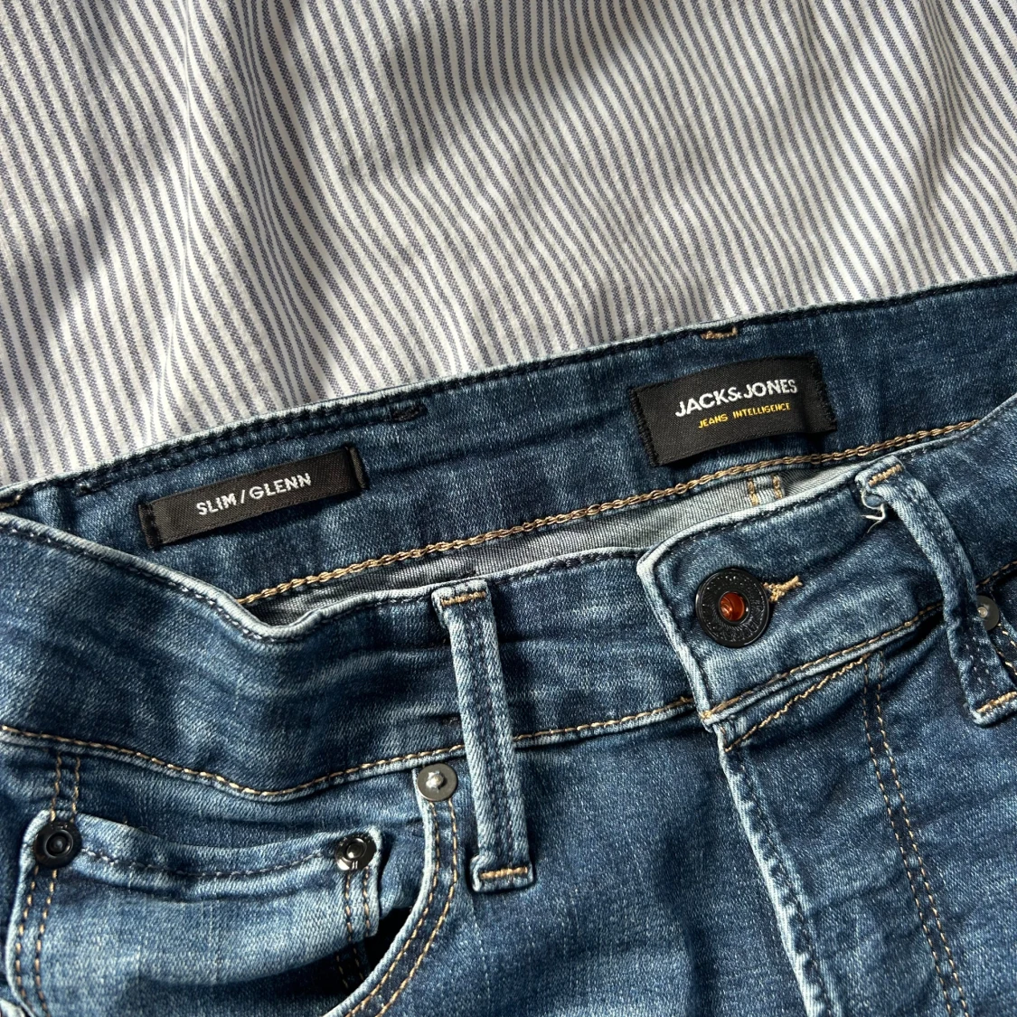 Snygga blå jeans från Jack & Jones i modellen Slim/Glenn. Köpt i butik, använt ett fåtal gånger. Skick 8/10 ser som nya ut. Säljer då de inte kommer till användning. Storlek 29/30