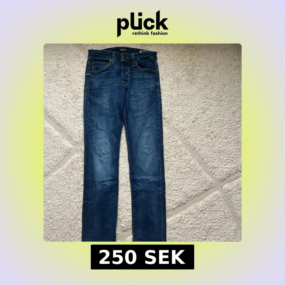 Snygga blå jeans från Jack & Jones i modellen Slim Glenn. Jeansen har en slim passform, klassisk femficksdesign och kontrastsömmar. Tillverkade i mjukt denim-material som sitter skönt och har en modern look. Perfekta för dig som gillar stilrena och smala jeans.
