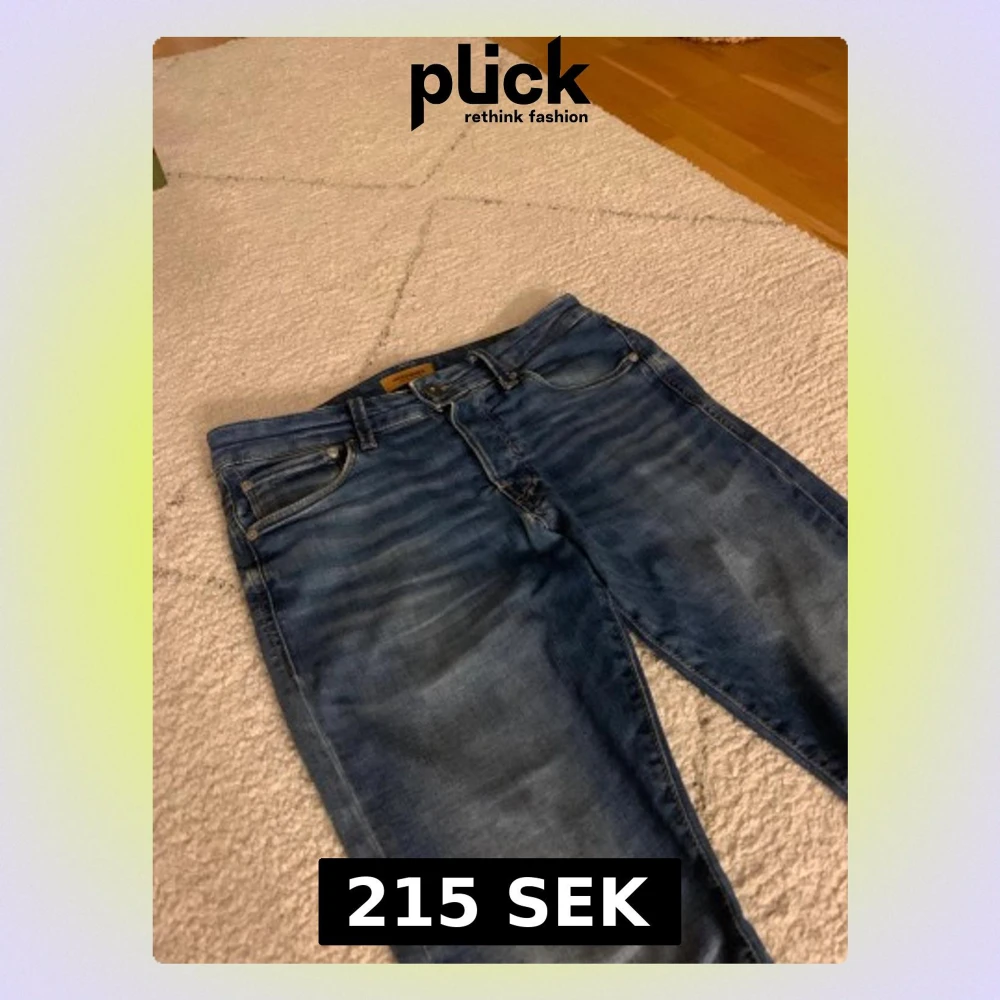 Snygga blå jeans från Jack & Jones, modell Slim Glenn. De har en slim passform och klassisk femficksdesign med slitningar och tvättade detaljer. Jeansen är tillverkade i jeansmaterial och har knapp- och dragkedjestängning.