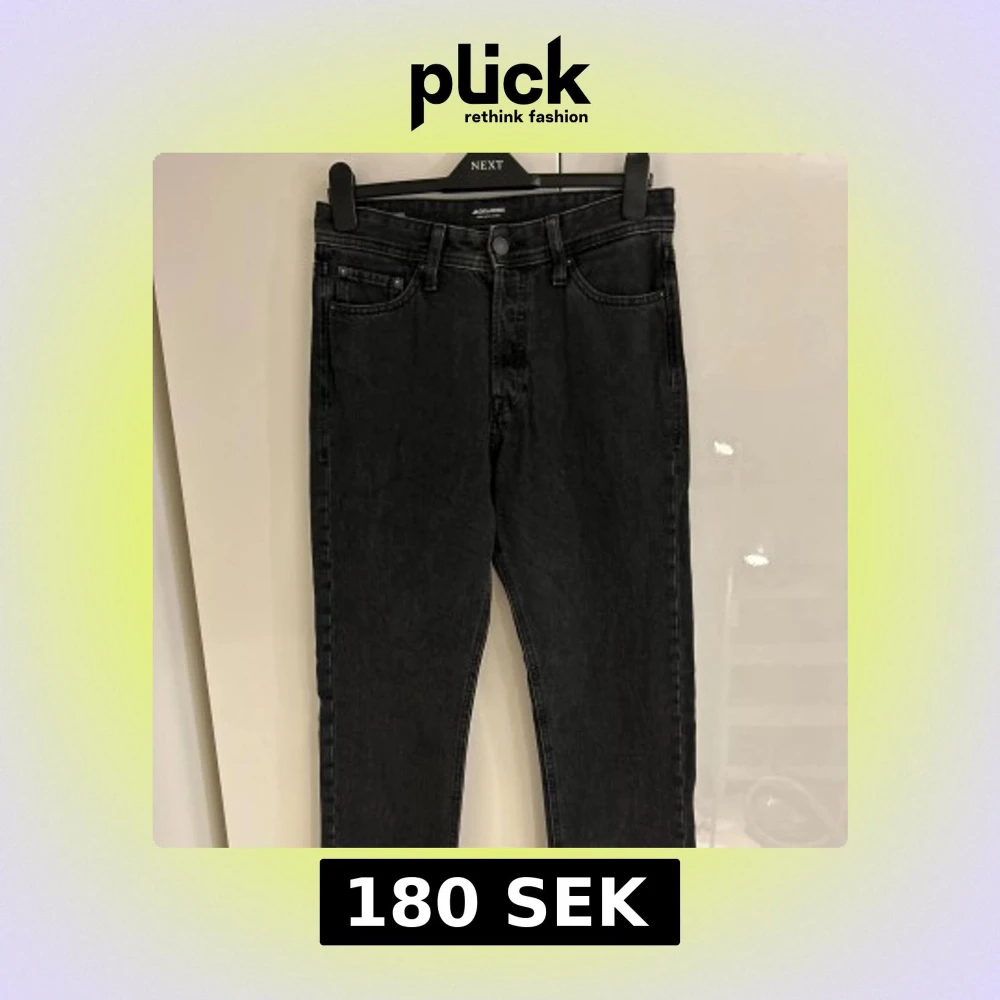 Svarta jeans från Jack & Jones med klassisk femficksdesign och raka ben. Jeansen har normal passform, knapp och dragkedja i gylfen samt bälteshällor. Materialet är robust denim i bomull och färgen är mörk svart med lätt tvättad look.