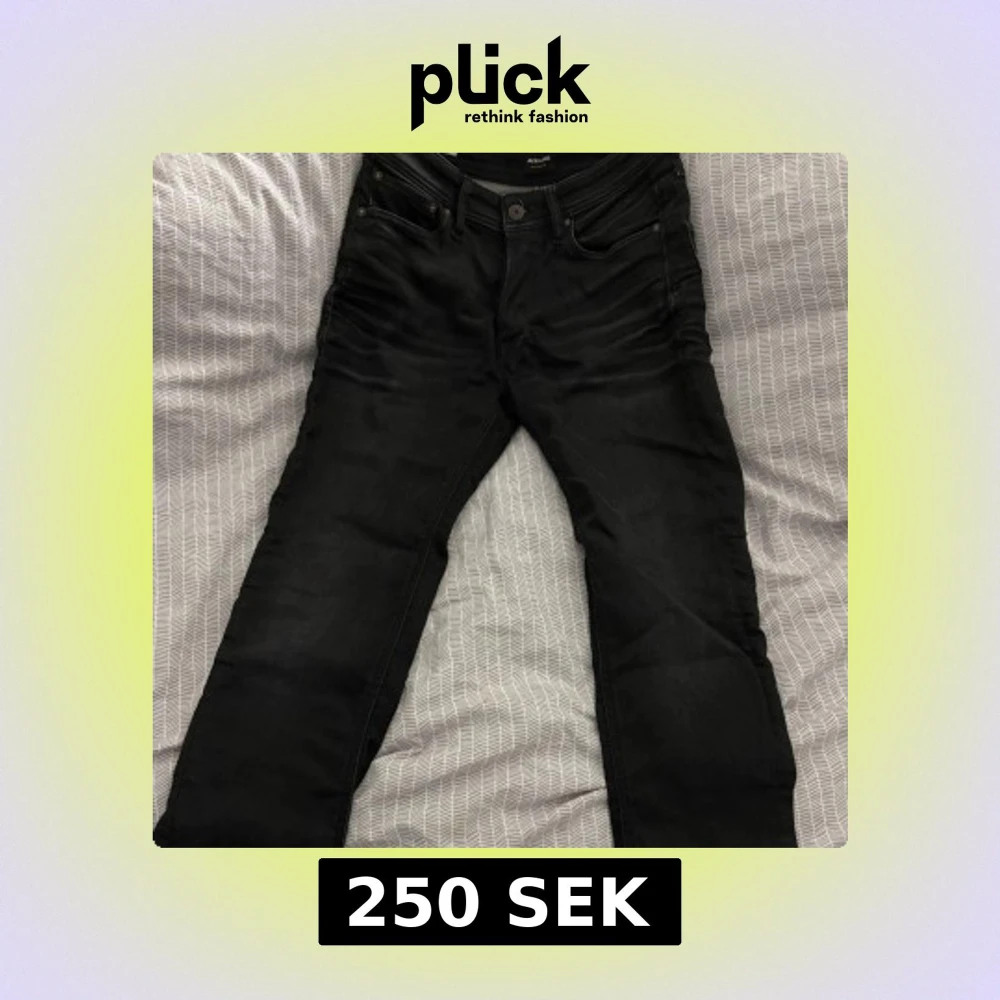 Snygga svarta jeans från Jack & Jones med en klassisk design. De har en bekväm passform och är perfekta för en stilren look. Jeansen har fem fickor och knappgylf.