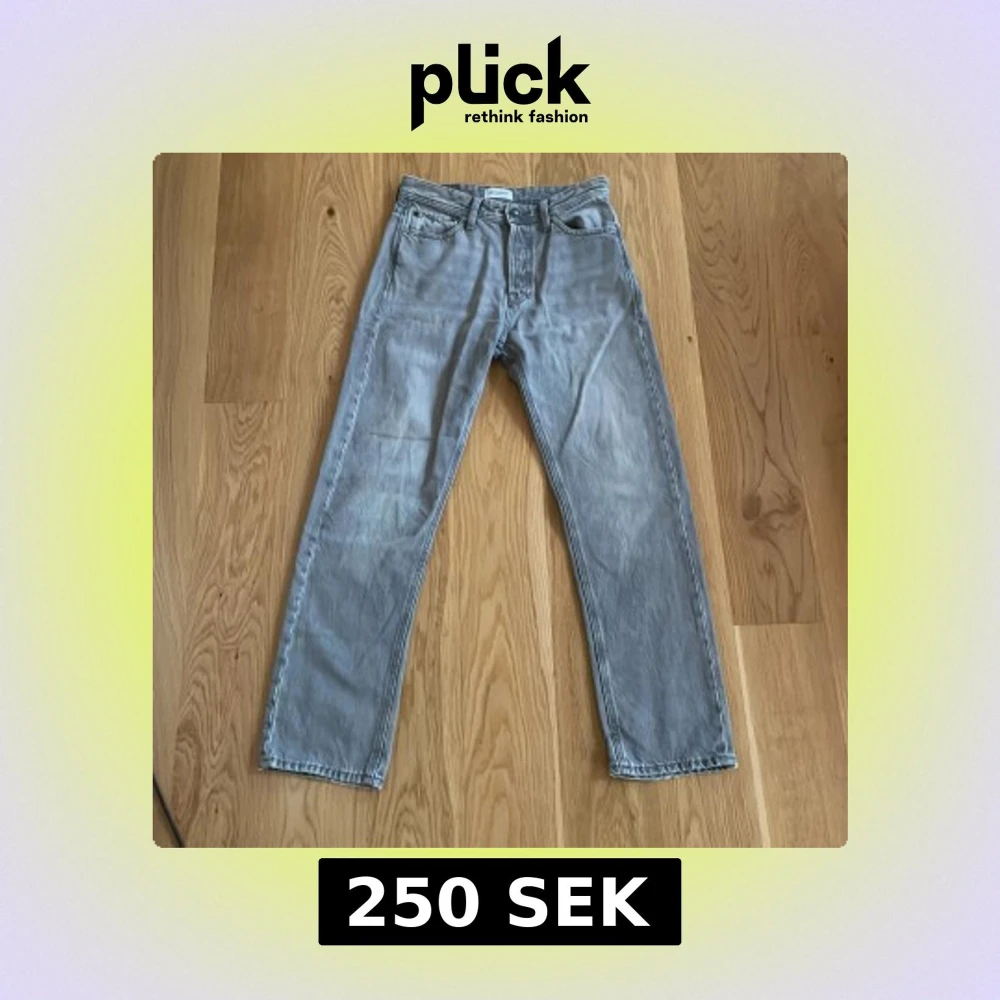 Säljer ett par grå jeans från Jack & Jones i modellen Relaxed/Chris. De har en avslappnad passform och klassisk design med fem fickor och knappgylf. Knappt använda, har även inga defekter.
