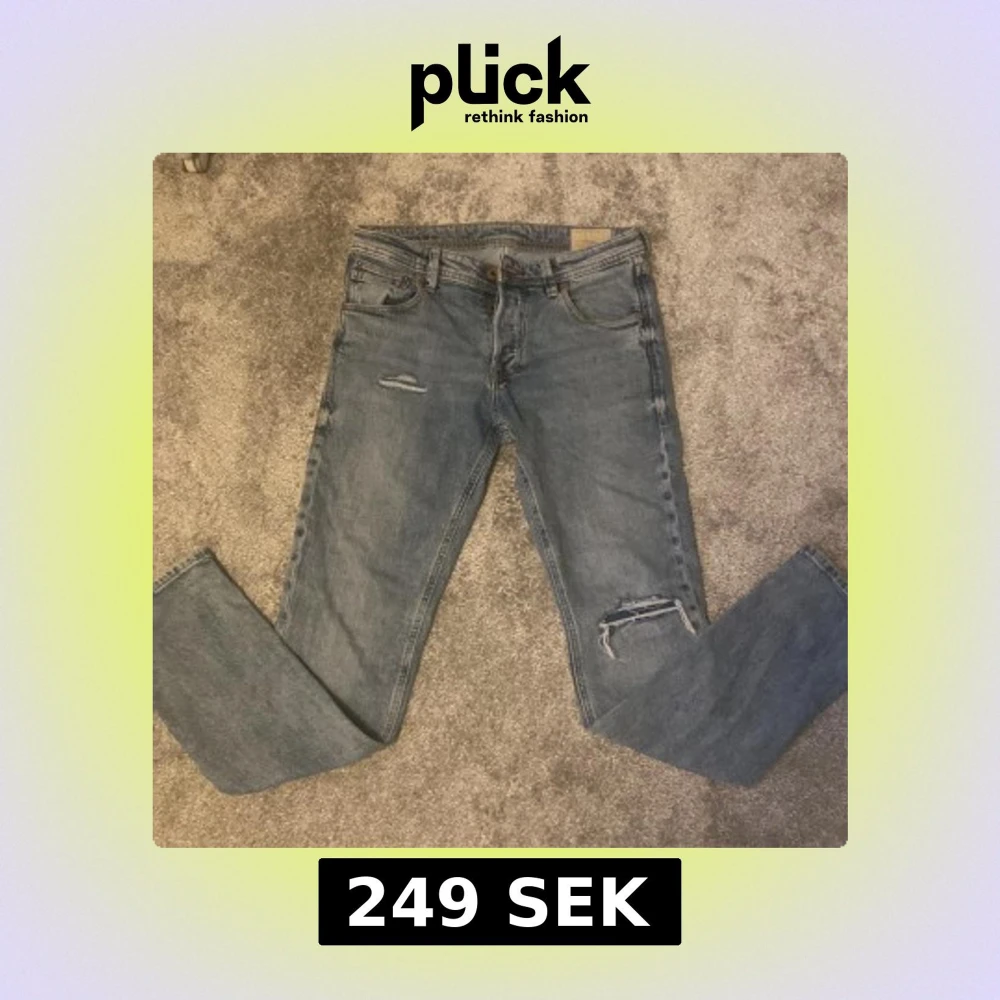 Tja säljer dem här snygg Jack & Jones jeansen med slitningar! •Storlek W28 L30•Skick 9/10 som nya • Färg ljusblåa • nypris cirka 500-600kr nu endast 249kr! Hör av er vid minsta lilla fråga eller fundering!